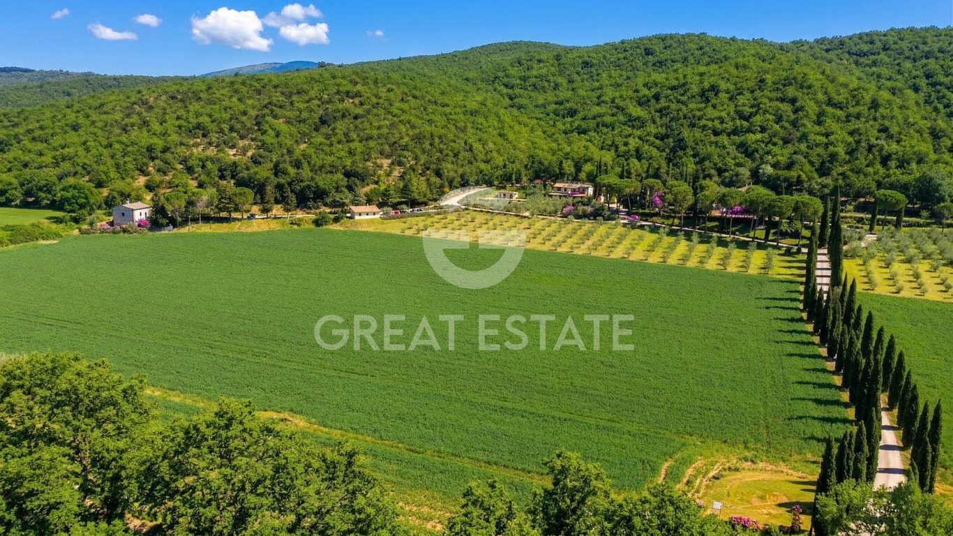 This small estate, hidden among the trees and backed by a hillside, enjoys a secluded position while at the same time being very close to a town offering all essential services. It is reached via a road in excellent condition which, leaving the town and following a beautiful cypress-lined avenue, leads to the hamlet. In just a moment it feels as though you have traveled miles, as you suddenly find yourself immersed in the countryside, surrounded by green fields and complete tranquility. The e...