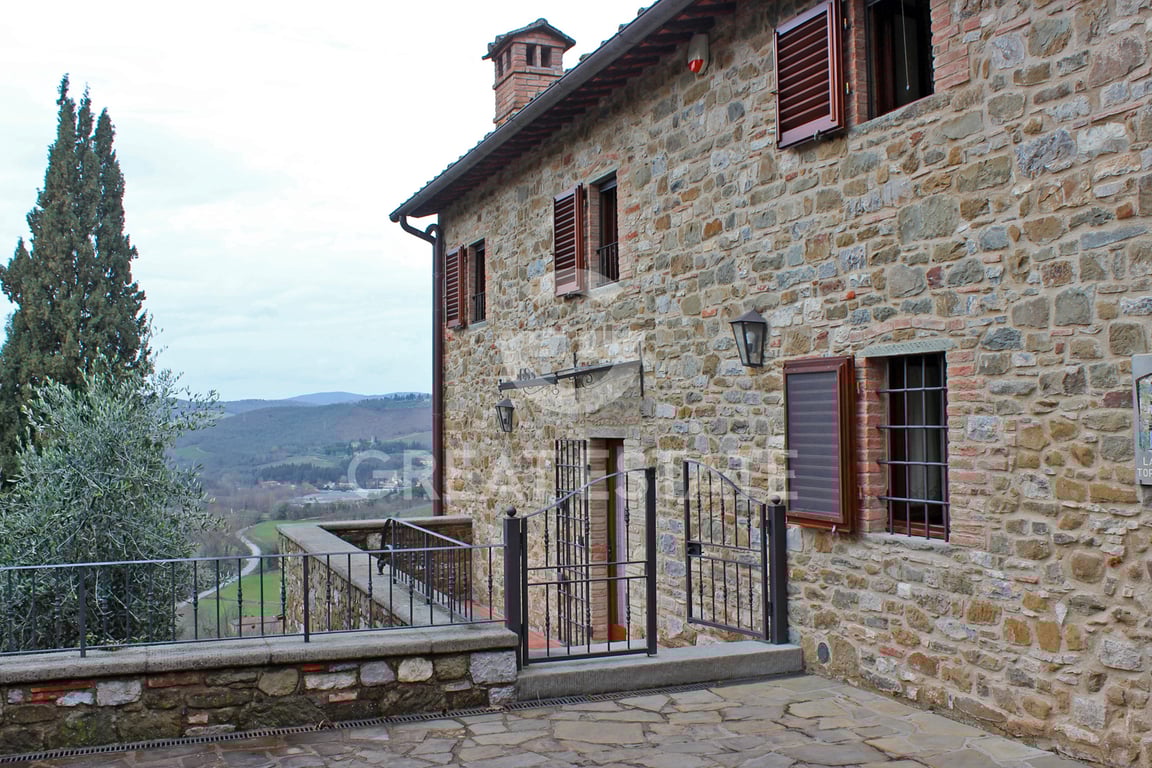 In the beautiful and fascinating landscape that is Chianti, in a small and delightful village stands this beautiful farmhouse on three floors of approximately 250 sqm with garden and swimming pool from where you can admire a beautiful panorama. The farmhouse is spread over three floors and is served by multiple entrances. The main one leads us to the second level where we find a lovely living room. On the right side we find a bedroom with bathroom and from the living room through an exposed ston...