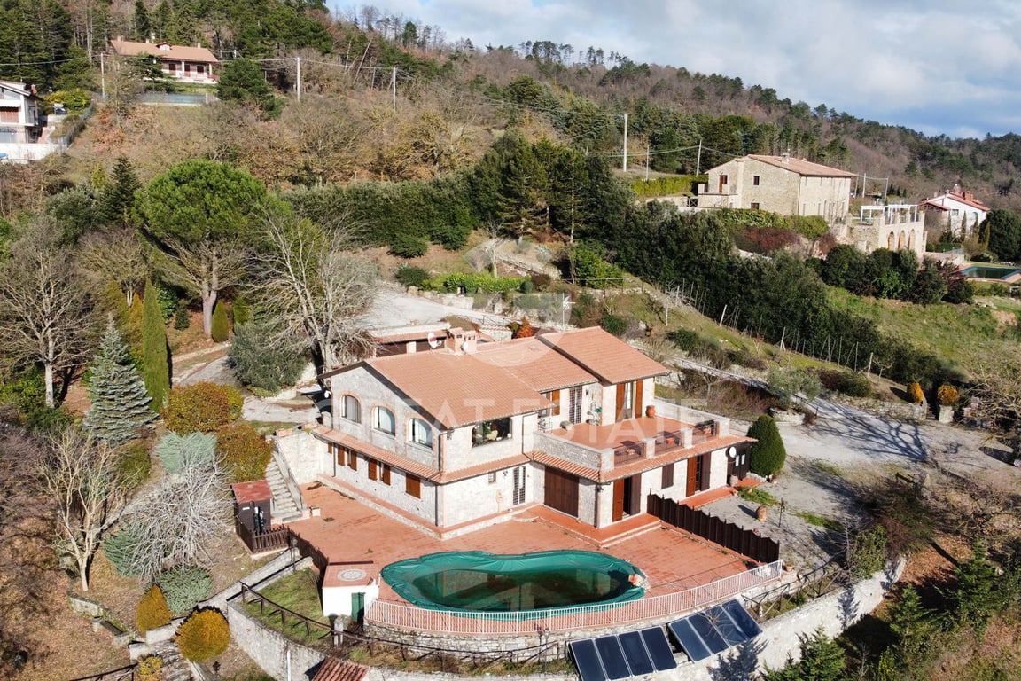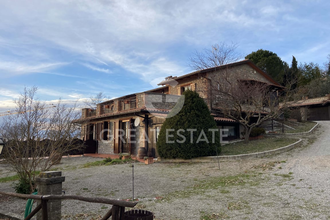 Privacy, views and light welcome you to Villa La Maddalena, a prestigious villa nestled in the hills between Umbria and Tuscany, boasting a panorama that overlooks the entire Lake Trasimeno. The Villa is arranged over two levels for a total of 403 sqm; on the raised ground floor you are welcomed by a magnificent double living room with access to the large 71 sqm panoramic terrace, a spacious eat-in kitchen, a dining room, two bedrooms and two bathrooms; via an internal staircase you reach the l...