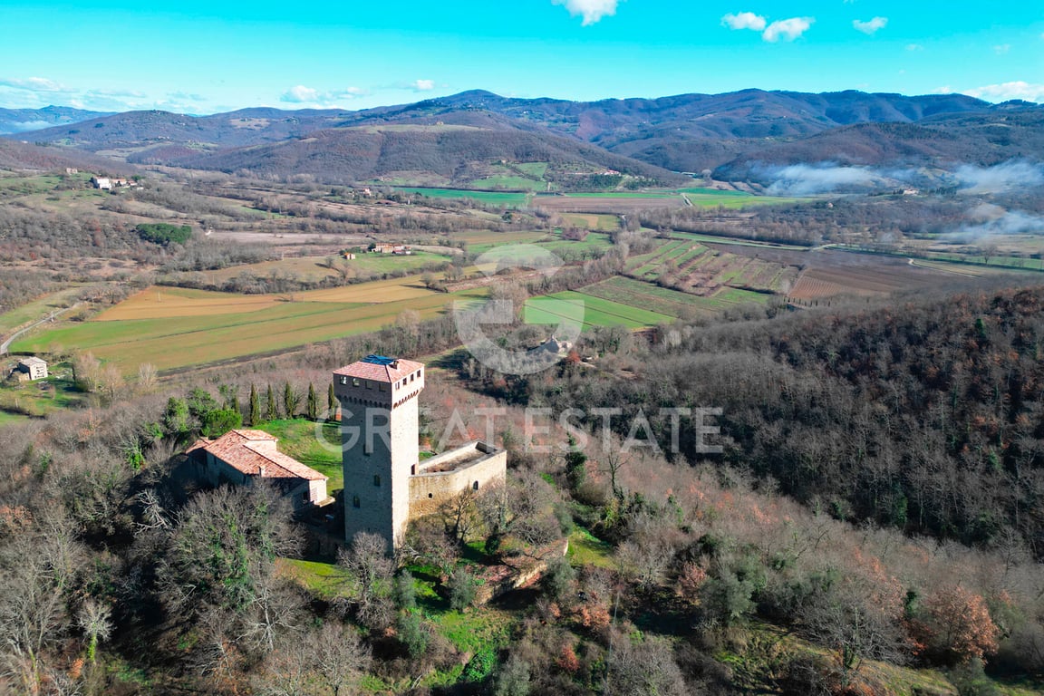 “Castello di Fiume” is a marvellous property surrounded by 6.500sqm of land, which is adjacent to the prestigious Tenuta Reschio, the well-known Convento Cappuccini restored by George Lucas, and to the resort Antognolla Golf. This estate consists of a tower and a castle, for a total surface of 1080sqm, wisely and carefully restored by a professional team of architects, engineers and builders. The quadrangular sandstone tower is provided with pointed windows and is set on 6 levels. Within the tow...