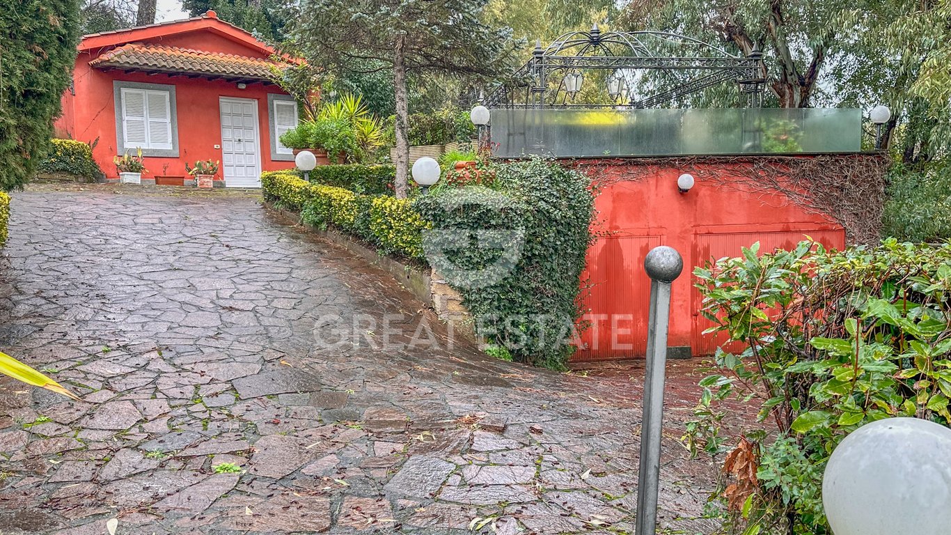 My Luxury House offers for sale a magnificent detached villa with panoramic views in Sacrofano, featuring an internal surface area of approximately 750 mq and set within a lush private park of 2.5 hectares, comprising lawn, tall trees, flowers, fruit trees, and dense vegetation, enhanced by its excellent exposure. The property enjoys open views thanks to its elevated position. The villa is arranged over three levels. The lower floor is dedicated to service areas and parking spaces, internally co...
