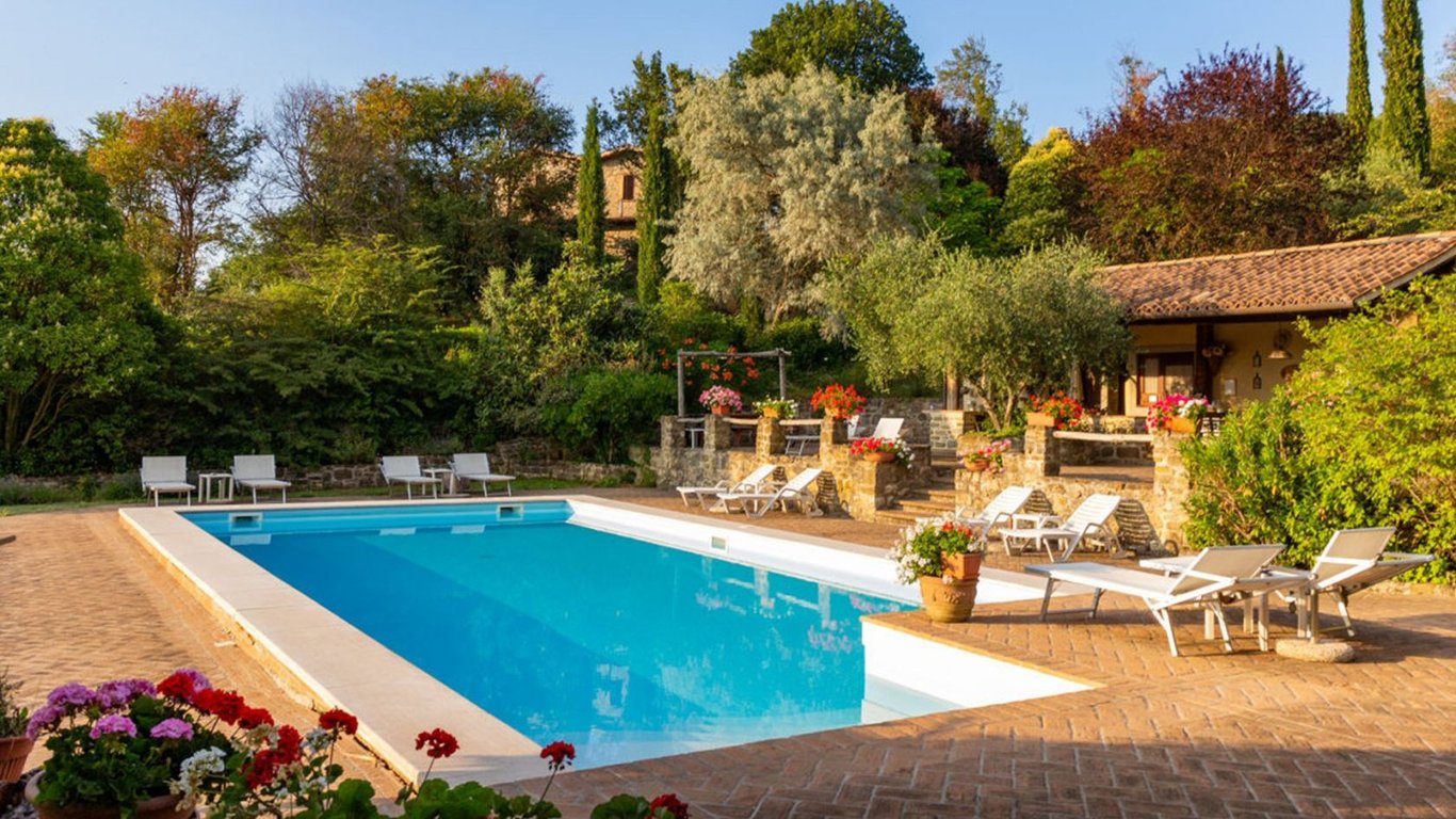 In Umbria, the green heart of Italy, this charming old farmhouse for sale is set in over 11 hectares of land, in a dominant position overlooking the valley, from which it enjoys an enchanting panorama. Situated among the hills and surrounded by the most luxuriant nature, it is the ideal place to breathe peace and serenity far from the chaos of big cities.The property is dedicated to the cultivation of olive and fruit trees. There are extensive pastures for the farm's horses.The farm consists of ...