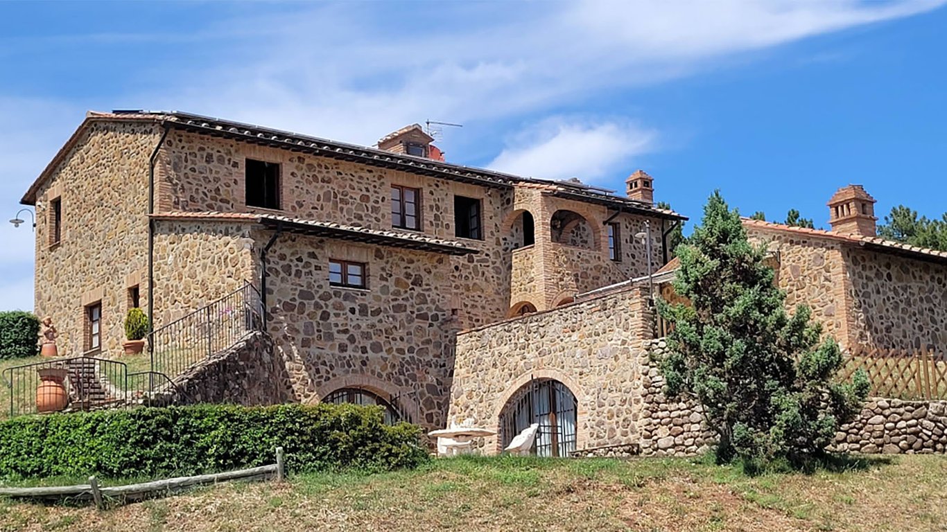 CHARMING 4 BDR FARMHOUSE, SWIMMING POOL, 20 HA. OF LAND, BETWEEN VOLTERRA & CASOLE D’ELSA, TUSCANY MDI_R409 Perched atop a hill with breathtaking panoramic views of the surrounding countryside, including the medieval village of Casole d’Elsa just 6 km away, this beautiful Tuscan farmhouse offers an exceptional blend of charm, space, and privacy. Spanning approximately 300 sqm over three levels, the basement features a spacious living and dining area with a fireplace and kitchenette, a guest bat...