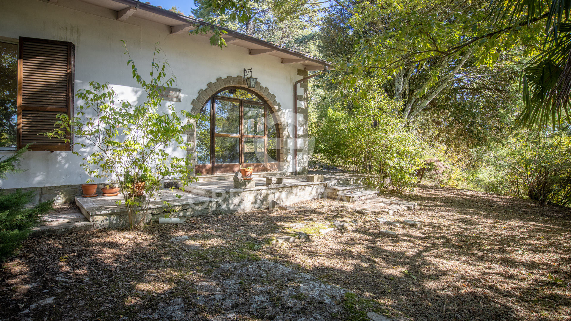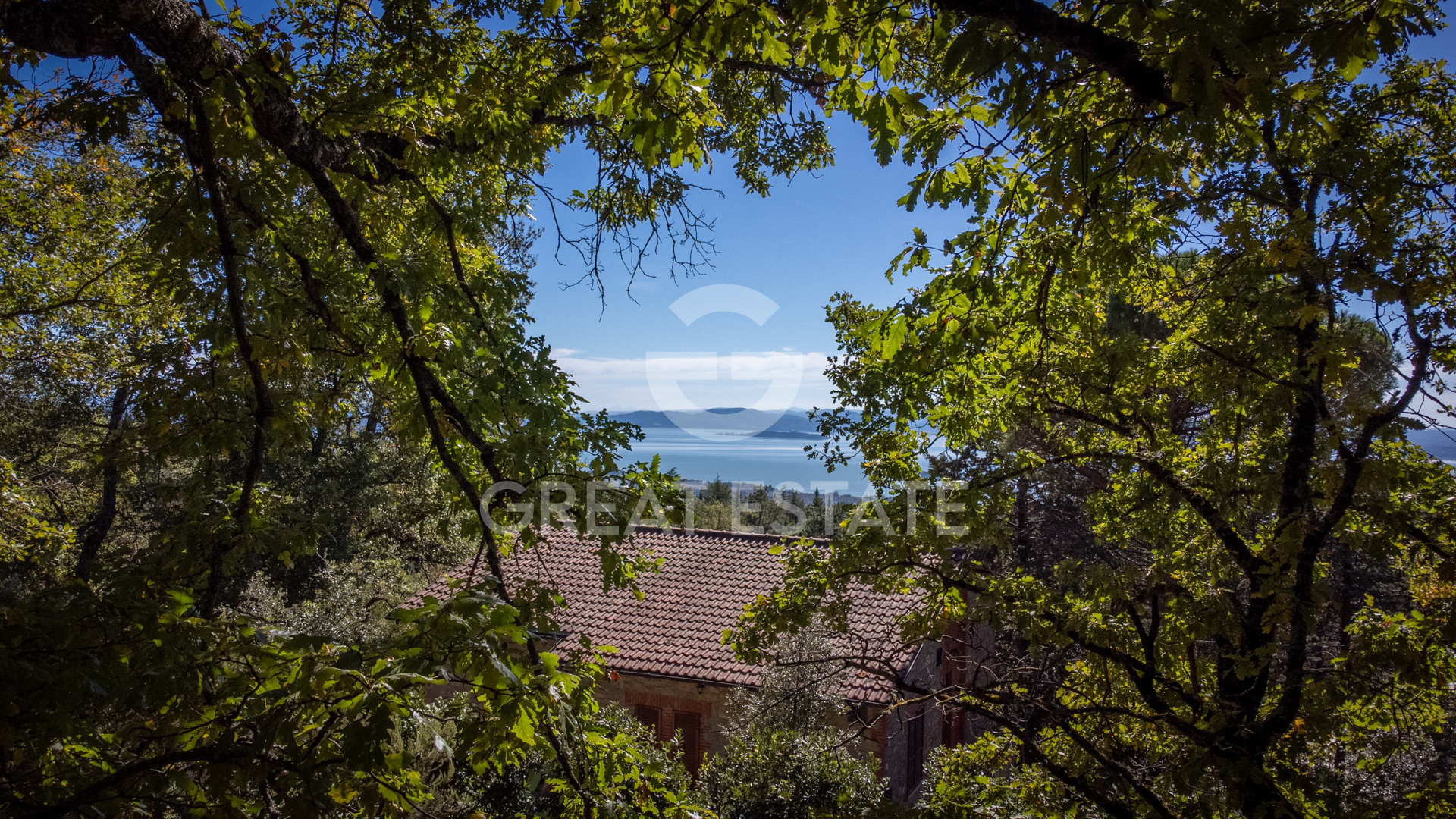 Detached villa located in the countryside of Tuoro sul Trasimeno, in a setting of absolute tranquility and privacy. The property extends over a single level of approximately 130 sqm and is surrounded by about 2,300 sqm of private garden with a stunning view of the Umbrian hills and Lake Trasimeno. The property, easily accessible, was built in the 1970s and partially renovated in 2010. The internal spaces are spacious and functional: entrance, bright south-facing living room, fully equipped kitch...