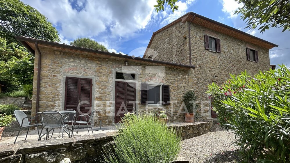 Located in the picturesque setting of the Val di Chio, this restored old farmhouse represents a unique opportunity for those wishing to combine the beauty of Tuscan tradition with modern living comforts. The property includes 12,080 square meters of land, featuring a garden, mature trees, and a swimming pool. The view from the garden stretches across gentle hills and vineyards. The stone farmhouse is perfectly integrated into the surrounding landscape, showcasing characteristic and original arc...