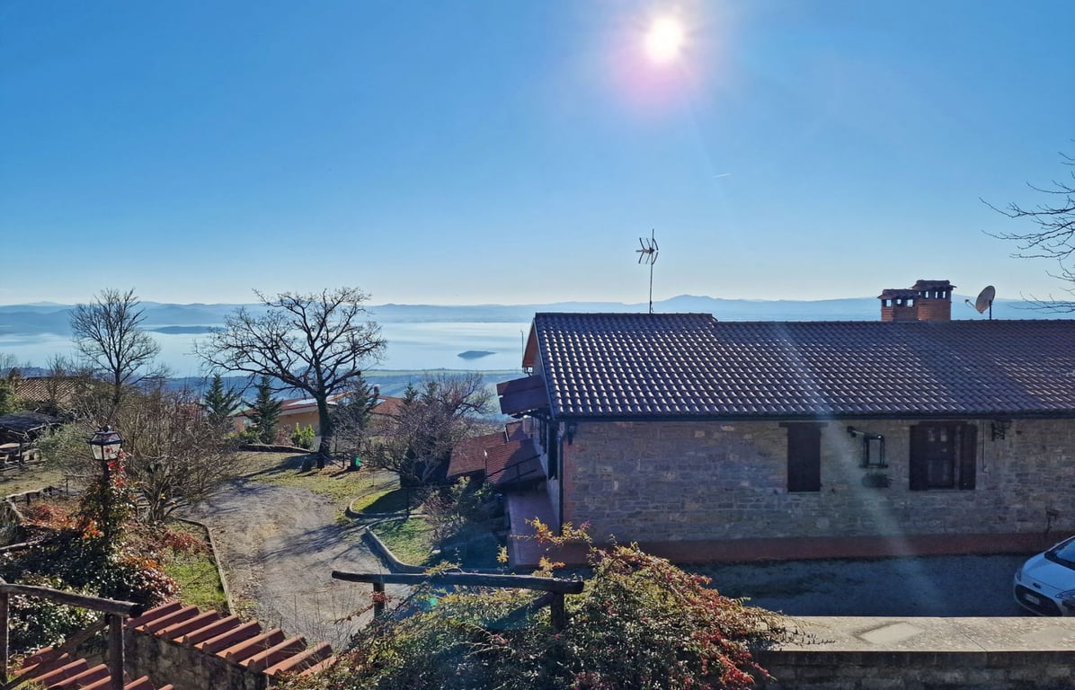 Immersed in the typical Umbrian landscape, in the province of Perugia, this finely restored villa is for sale in the beautiful hills between Tuoro and Passignano sul Trasimeno, on the border between Umbria and Tuscany, a short distance from Lake Trasimeno and the famous holiday resort of Lisciano Niccone.Its hillside position offers a breathtaking panoramic view of Lake Trasimeno. The villa is set in a large private garden of 4000 square metres, fully fenced, on several levels, with a barbecue a...