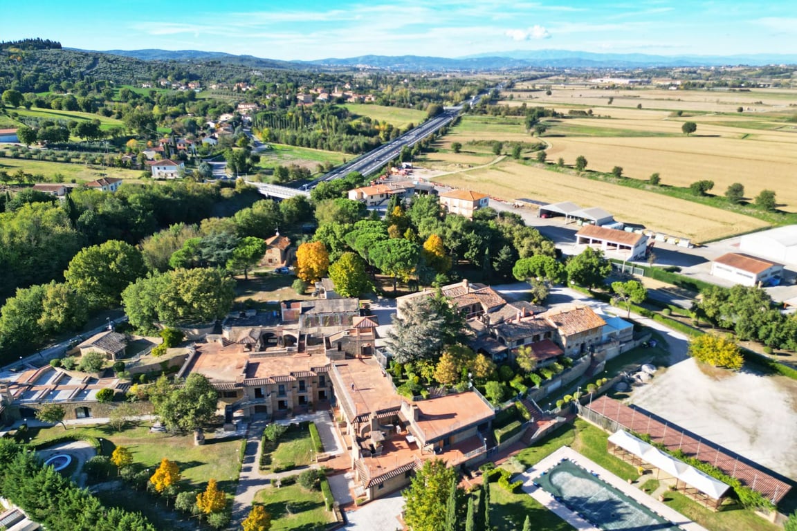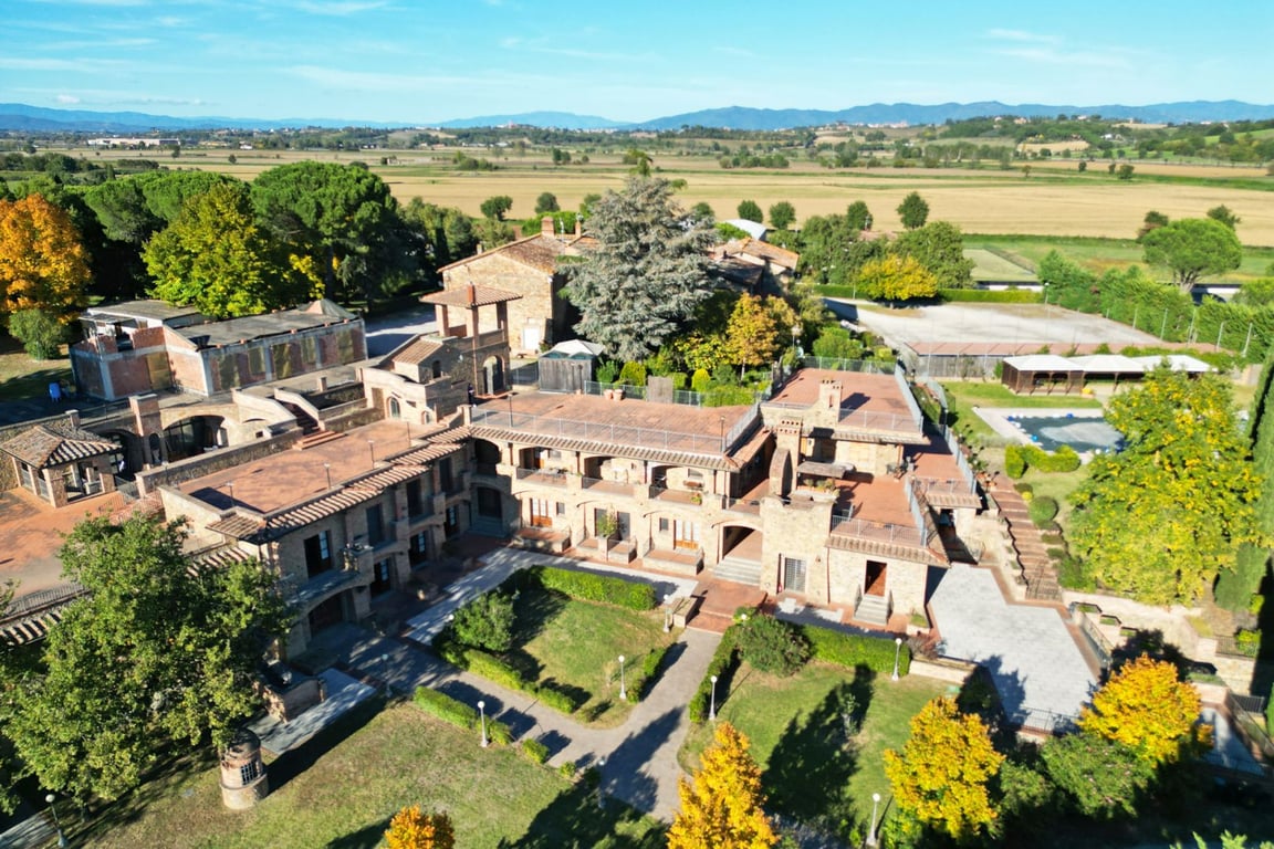 In the authentic heart of Tuscany, surrounded by a private park of approximately 20,000 sqm, this charming residential and commercial complex represents a unique opportunity for those who wish to live and invest in one of the most beloved locations in the region. Surrounded by manicured lawns and imposing trees that create an evocative atmosphere, the complex offers the perfect setting for relaxation and entertainment, including a splendid swimming pool, elegant fountains, and panoramic terraces...