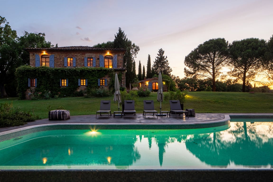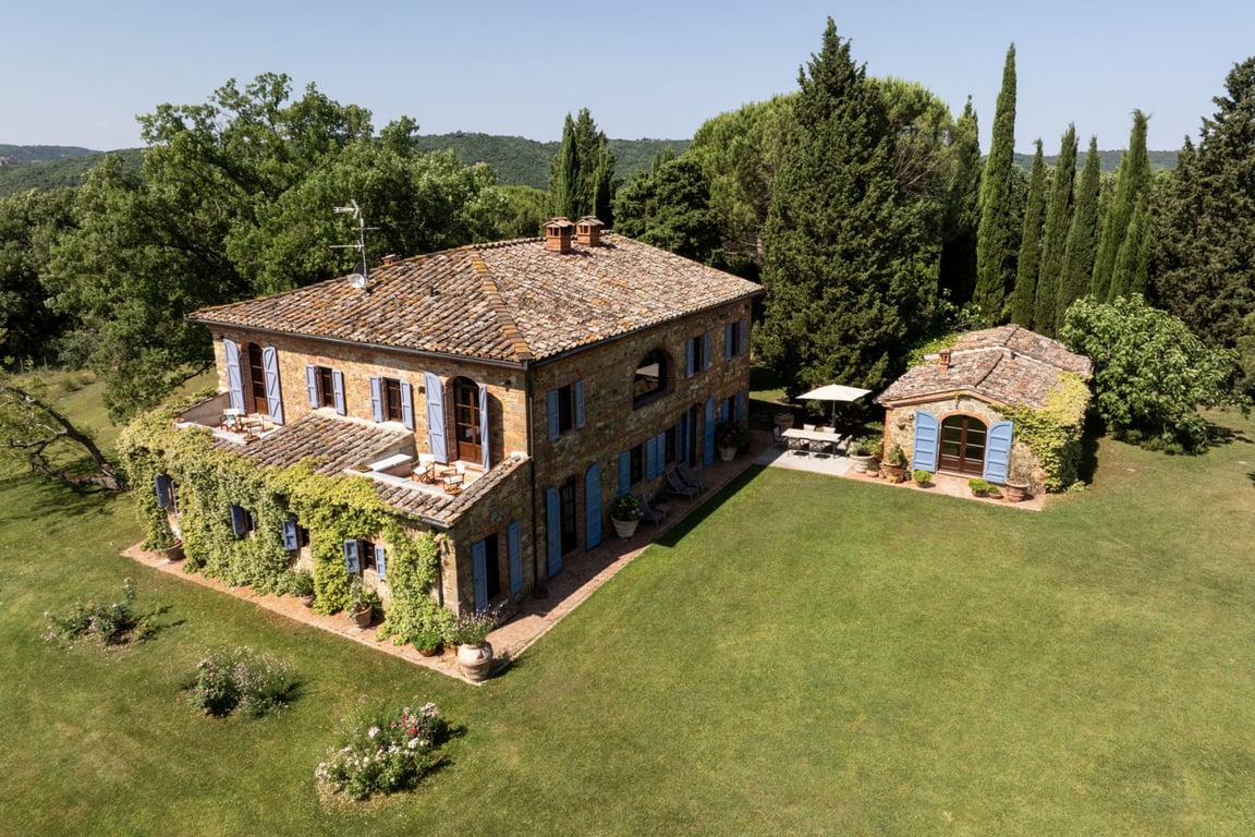 Overlooking the enchanting Tuscan hills, a few minutes from the splendid medieval village of Lucignano, this elegant residential complex in authentic rustic style represents a rare opportunity for those who wish to live immersed in the beauty and tranquillity of one of Italy's most iconic landscapes.Located in one of the most prestigious and sought-after areas in the province of Arezzo, the farmhouse dominates a breathtaking panorama, offering glimpses of unspoilt nature and an atmosphere of tim...