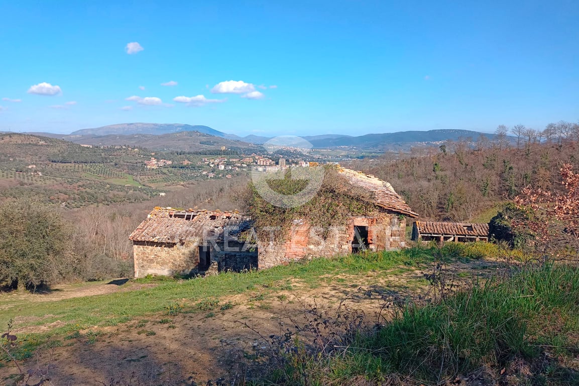 Podere Ciambricola is an ancient farmhouse dating back to the 1800's to be restored. It is located in one of the most beautiful spots on the hills surrounding Lake Trasimeno. The main building is approximately 434 sqm on three levels and is in a typical Umbrian style. It is possible to obtain 5 bedrooms, a large living room and kitchen. It overlooks the Magione valley and the small village of Monte Colognola. There are two outbuildings for a total of approximately 140 sqm; could be rebuilt 50 me...