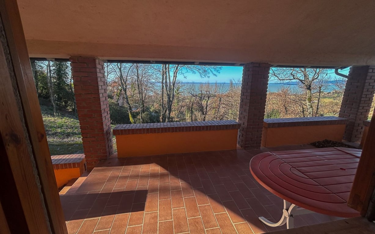 In hilly location, with open views overlooking Trasimeno Lake and its sunsets, stone and bricks independent house of approx. 140 sqm arranged on three levels divided as follows:Basement floor: garage and two large rooms used as storage space;Ground floor: large access porch with Lake views, large living room with fireplace and staircase leading to the upper floor, kitchenette, corridor, double bedroom and one bathroom with shower;First floor: large mezzanine and two double bedrooms;The property ...