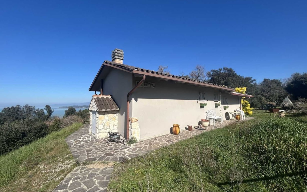 On the south-facing side of Lake Trasimeno, in a hilly and dominant position, a small villa all on one floor with a wonderful wide-ranging view of the lake and Polvese Island. The small villa, recently built, measures approx. 70 sqm and includes a living room with kitchenette, double bedroom, utility room and two bathrooms. There is also a basement area of about 50 sqm.Outside, there is a porch with a veranda ideal for summer lunches and dinners, and land of 3,500 sqm with about fifty olive tree...