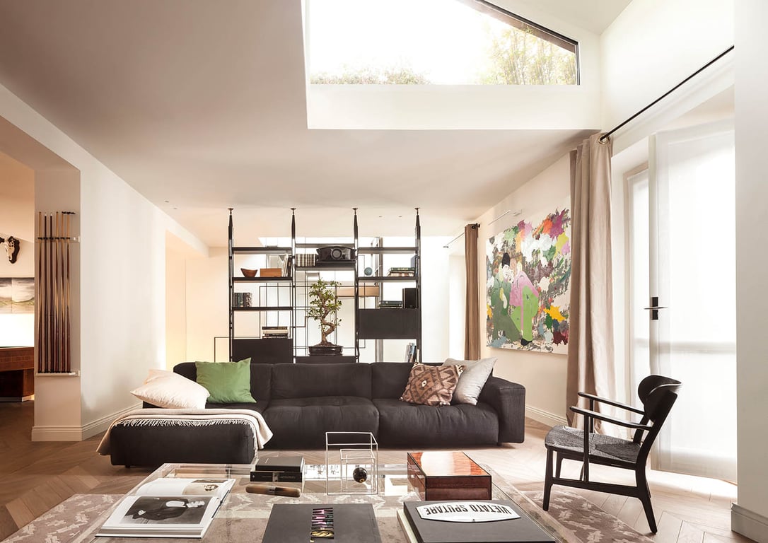 SOLD Apartment in historical building of early ‘900s with conservative renovation, in context of maximum security and privacy. The property consists of bright and silent attic of 250 sq m which is situated on 4th and 5th floor, huge representative living room, terrace, balcony, billiard room, spacious kitchen, master bedroom with walk-in closet and bathroom. Each of the other two rooms has its own bathroom too. There is a cellar included in the property, and mechanized garage which has its o...