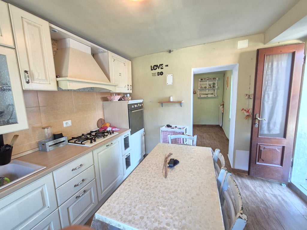 Parking space for 2 cars, access to the House from stone steps. Terraced Garden the back and Shed Large courtyard for eating out area. 1st House Ground Floor Entrance door into the well equipped Dining Kitchen with a Pellets Burner 1 Living Room,Leading to Bedrooms and Bathroom Marble Stair case for upper level 1 Bedroom 1 Passing Through room/bedroom 1 Bathroom with small Bath tub new Radiators new paving Second House Groud Floor Entrace from Yard into corridor 1 Large Living/ D...
