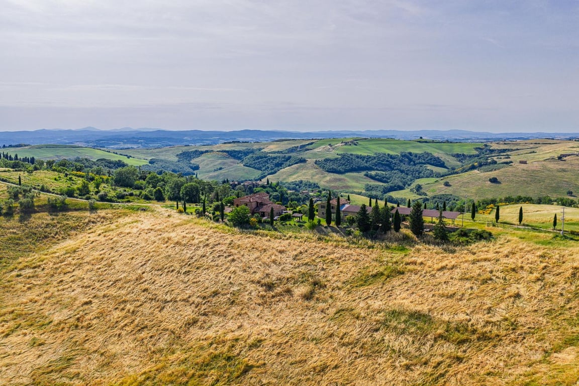 Magnificent property consisting of a beautiful farmhouse with outbuildings and land for sale between Montalcino and San Giovanni d'Asso, in one of the most desirable locations in Tuscany, between the Val d'Orcia and the Crete Senesi.The property consists of the wonderful farmhouse, a 270 sqm shed, a 380 sqm barn and 37.5 hectares of land of various crops, including arable land, grazing land, 5000 sqm of olive grove with 100 trees, 5500 sqm of DOC d'Orcia vineyard and 8 ha of woodland with truffl...