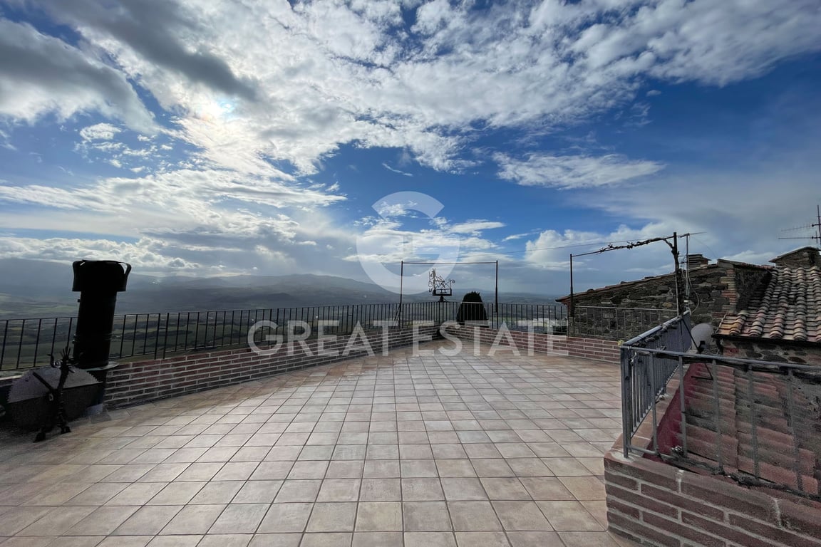 These two interesting apartments of 130 sqm in total are in the historic centre of Sant'Angelo in Colle. On the ground floor we find a beautiful entrance hall connected to the apartment on the first floor by an internal staircase. On the first floor there is one apartment with living room with fireplace, kitchen, double bedroom and bathroom. The other apartment is on the second floor with open space living-kitchen, bedroom and bathroom. The main highlight of the apartment is the terrace with a v...