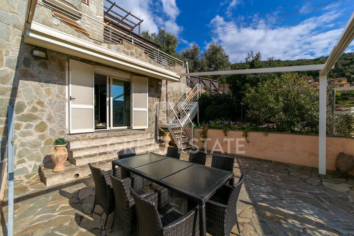 On the hill of Porto Santo Stefano, in a dominant position and with a splendid view of the port, we offer this interesting semi-detached portion completely renovated and ready to live in. On the lower floor, through a small hallway, there is the large living area, consisting of a large kitchen with an American island and a living room with large windows and direct access to the 45 sqm panoramic terrace, perfect for eating outdoors or to enjoy moments of relaxation thanks also to the existing mod...