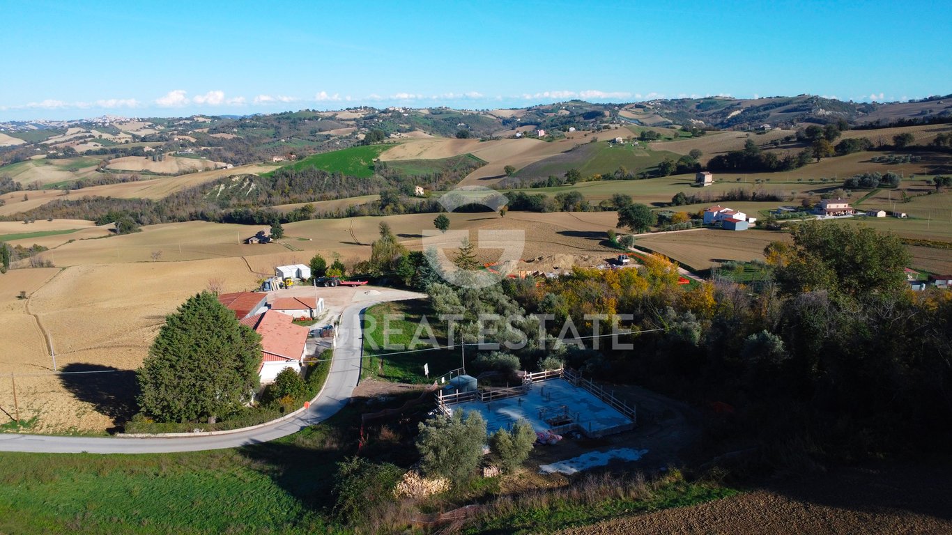 Peace, privacy and thoughtful proportions define this newly built single-family villa, set within the rolling hillside landscape of Montegiorgio, between the Adriatic Sea and the Marche hinterland. The property features independent access, enclosed by fencing and a driveway gate framed by exposed brick columns. The villa is arranged over two levels, surrounded by a private, well-designed green area conceived for easy and functional management. The garden hosts a panoramic swimming pool with c...