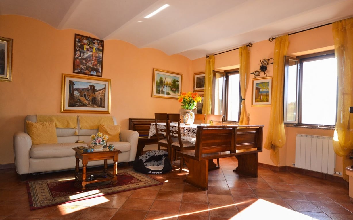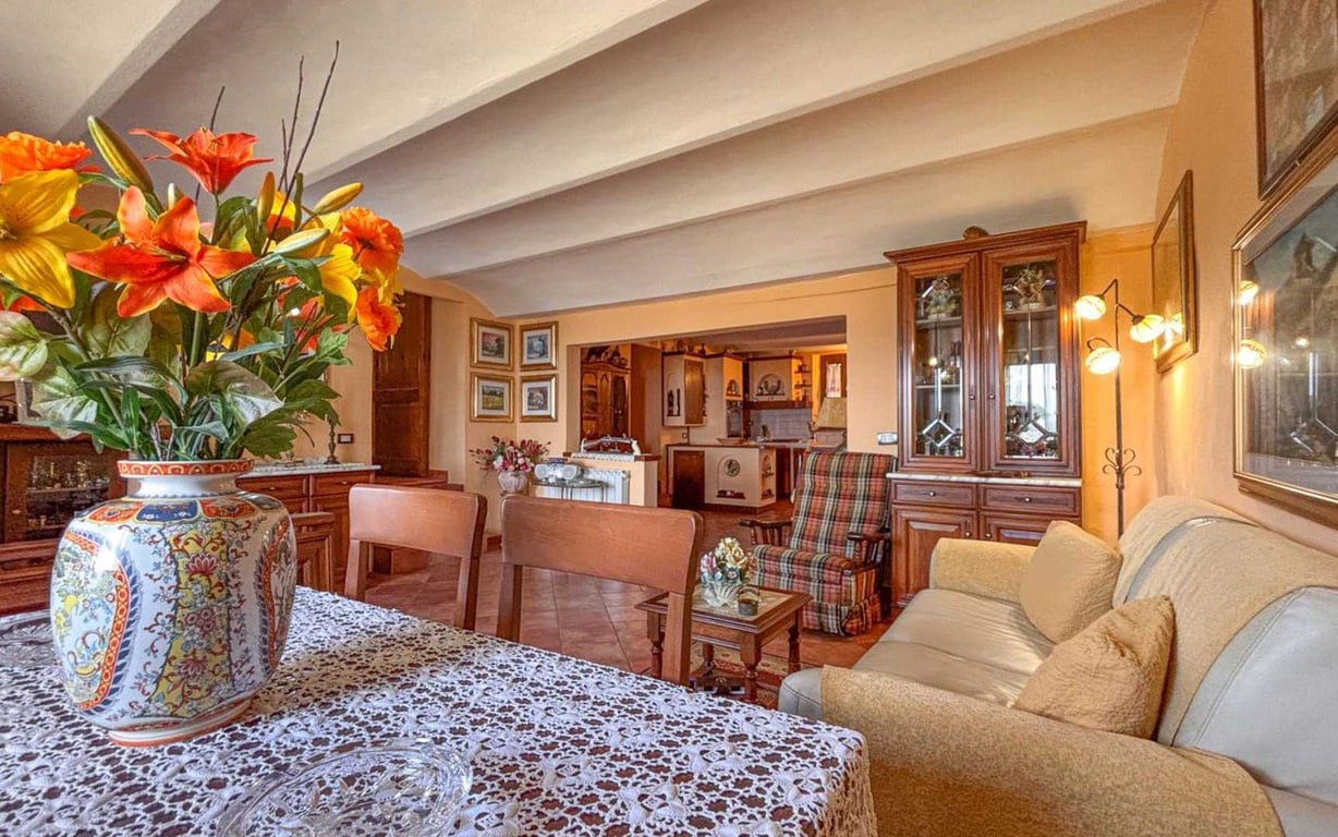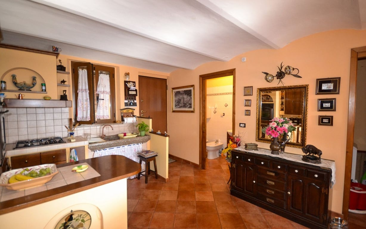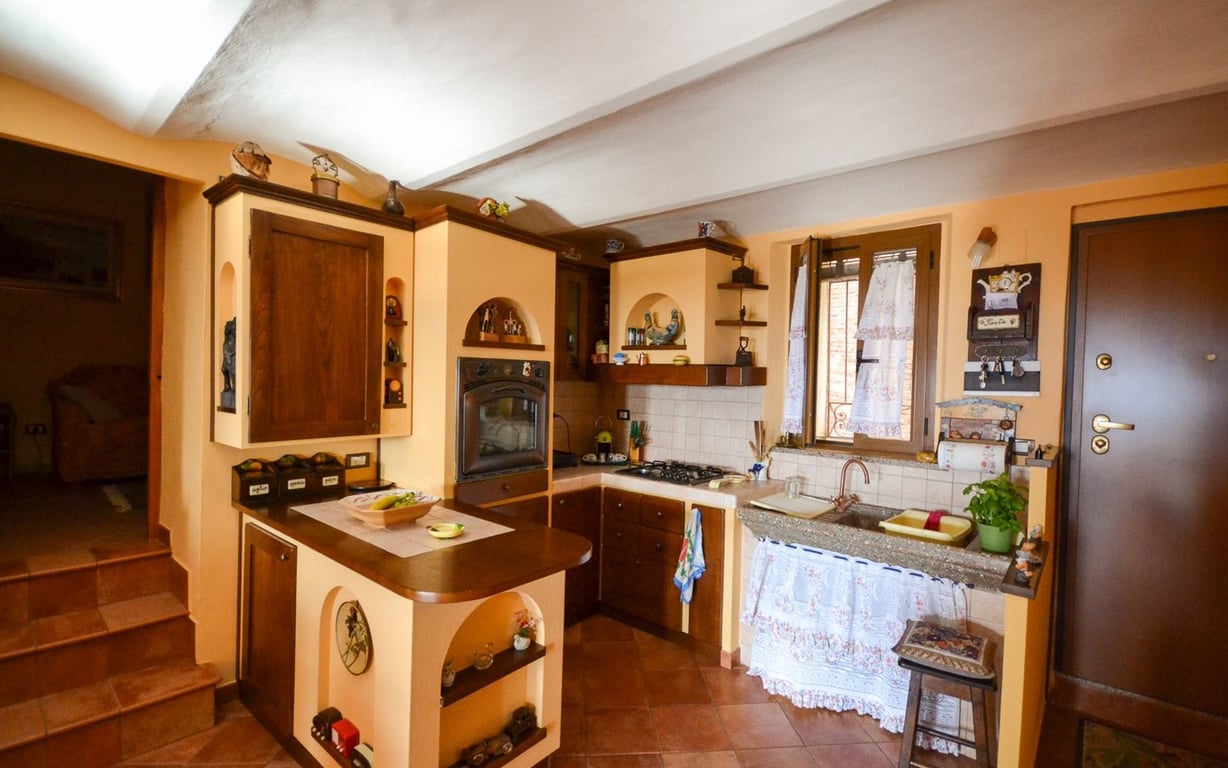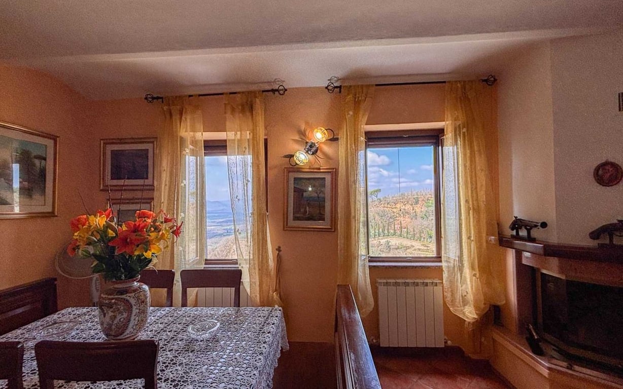 In the historic center of the beautiful village, overlooking the valley and Mount Cetona, a comfortable and welcoming apartment.The property is on one level and comprises a spacious living room with a built-in kitchenette and fireplace, with windows offering stunning sunset views, a double bedroom, a study, a bathroom, and a closet.Recently renovated in a traditional style, the apartment is ideal for residential living or seasonal rentals.Independent gas heating and double-glazed windows.