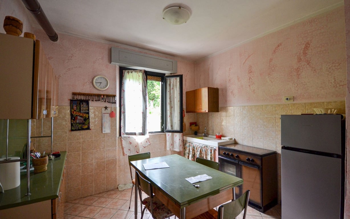 Close to all amenities, in quiet and private location, apartment on the ground floor of approx. 90 sqm divided in large living area with kitchenette and wood burning stove, two large double bedrooms, storage and bathroom with bathtub. The property is in good general conditions and includes large cellar in the basement floor as well as private garden with portion of annex. Very bright.