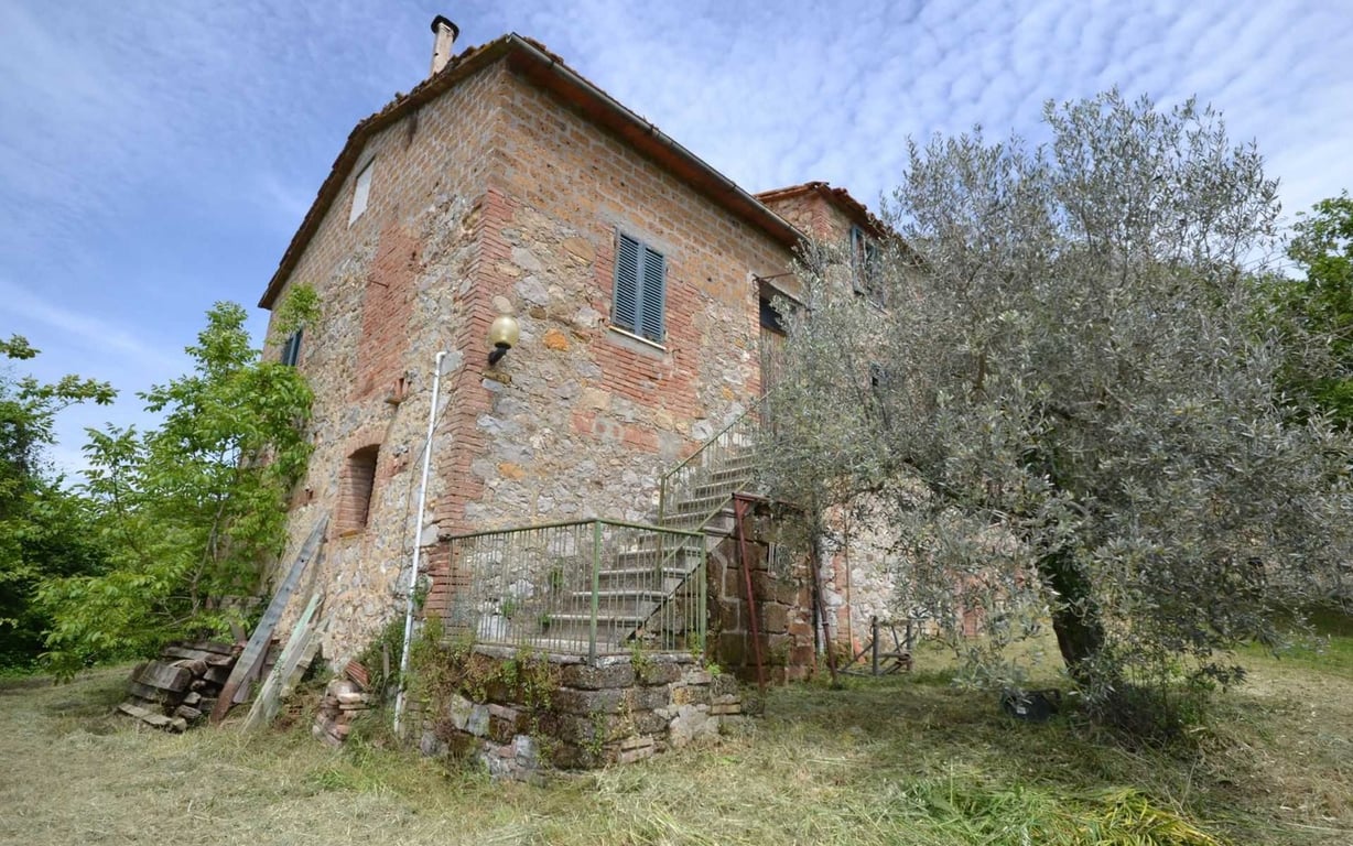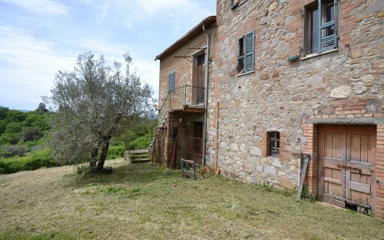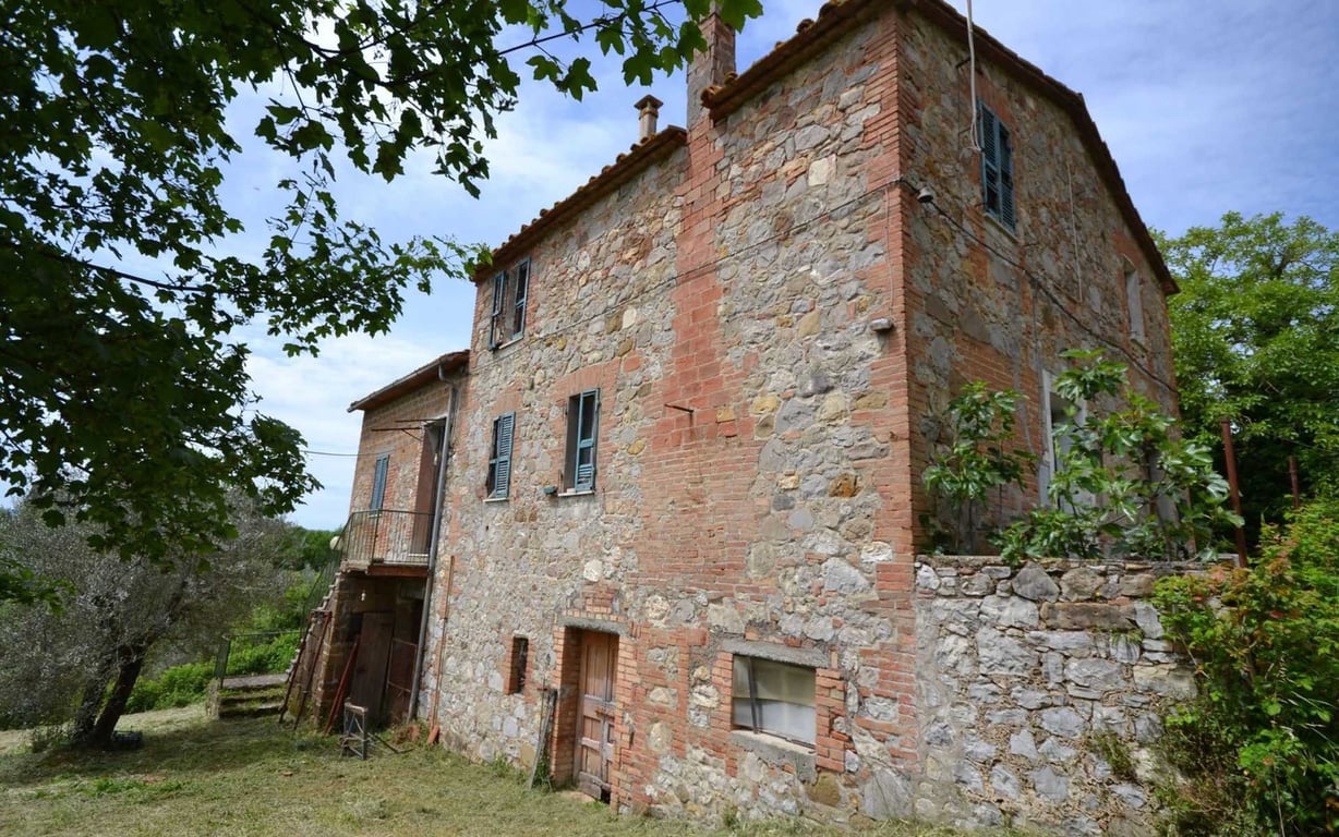 Late 19th century farmhouse measuring approx. 400 sq.m. arranged over 3 levels and divided in 2 living units, with old stables, grotto and storage spaces in the basement; living area on the ground floor and bedrooms on the first floor. The property includes various outbuildings totalling 150 sq.m., drinking fountain with natural spring water and 3.5 hectares of land, mainly olive grove and vineyard. Perfect location.