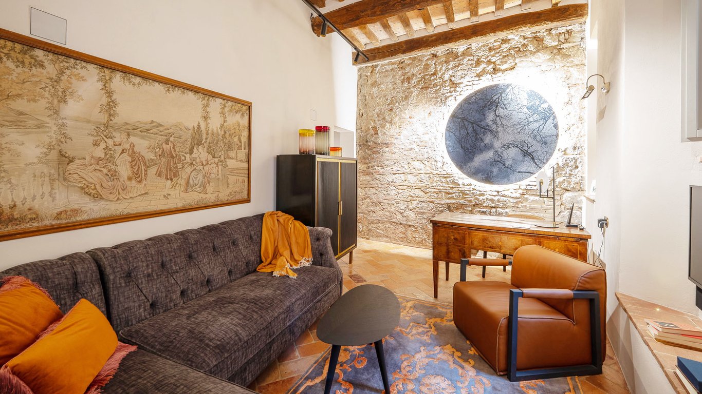 ELEGANT , SOPHISTICATED APARTMENT WITH PANORAMIC TERRACE, MONTEPULCIANO, SIENA, TUSCANY MDI_R399 Just steps from Piazza Grande, in the prestigious Talosa district of Montepulciano, this refined luxury apartment offers an exceptional living experience in the heart of this wonderful town. With its southeast exposure, the residence enjoys breathtaking views over the rolling hills and vineyards of Vino Nobile di Montepulciano, while the northwest side overlooks the town’s main historic street. The a...