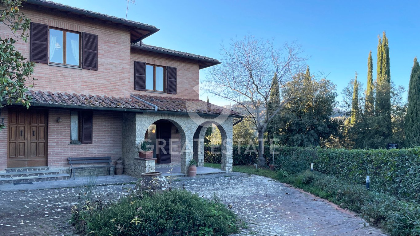 This charming property enjoys an ideal location, just a short walk from all main services, while offering the peace and allure of the Tuscan countryside, with splendid views over Montepulciano. The residence spans a total surface area of 354 sq m arranged over two levels, in addition to a basement level housing a spacious 87 sq m garage. On the ground floor, a generous entrance welcomes you and leads to a bright living room with two external accesses, one of which opens directly onto the portico...