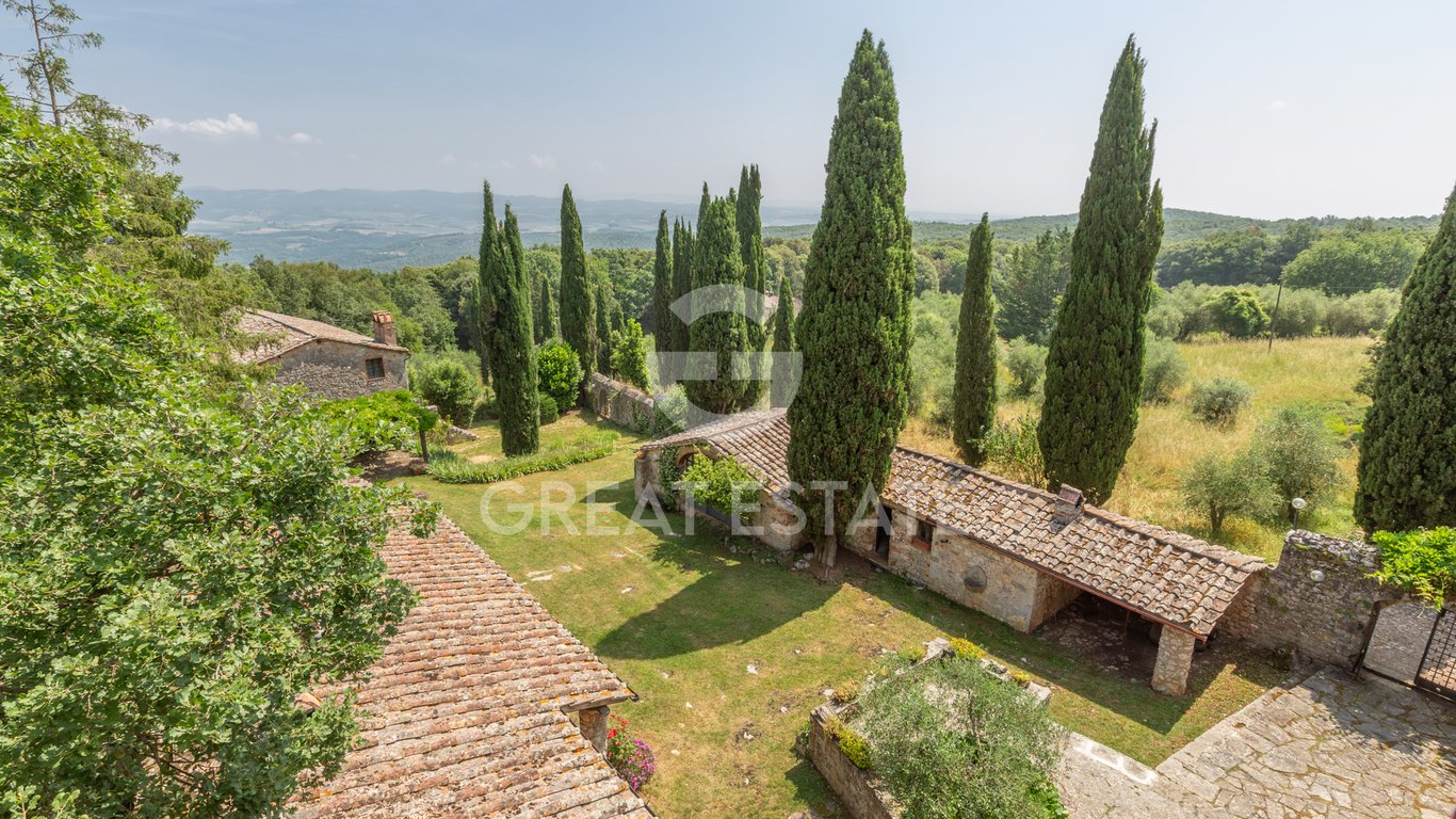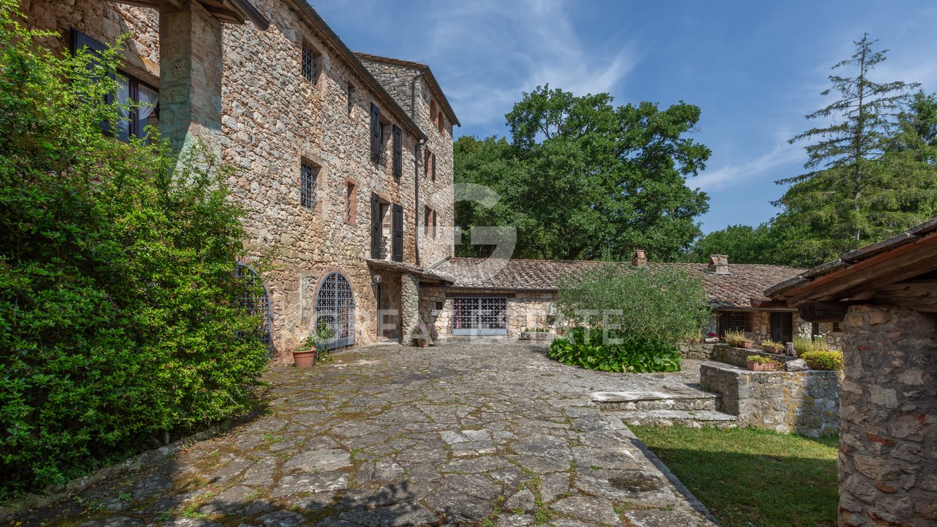 Located just a stone's throw from the city of Siena, this restored rural property dates back to about 1700 and is composed of three floors for a total of about 1,166 sqm. The location provides a high level of privacy, immersed in more than 110 hectares of land that includes pasture, mixed forest, coppice, olive grove and arable land, offering a rich and varied natural environment. The main building has a well-preserved historical structure that was restored in 2011, enhancing the typical archit...