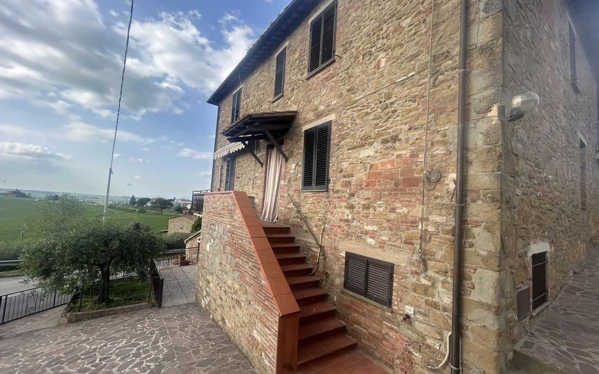 A stone's throw from the historical centre of Paciano, one of the most beautiful villages in Italy, portion of stone farmhouse dating back to 1779.Completely renovated since the 1980s, the farmhouse, measuring 264 sqm, is on two levels composed as follows:- On the ground floor: hallway, large kitchen with fireplace and pellet stove, large modern-style living room with small panoramic terrace, and bathroom- On the first floor: two large double bedrooms, single bedroom, small study, bathroomConnec...