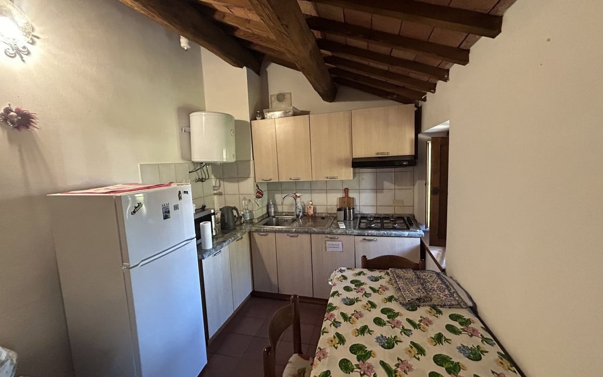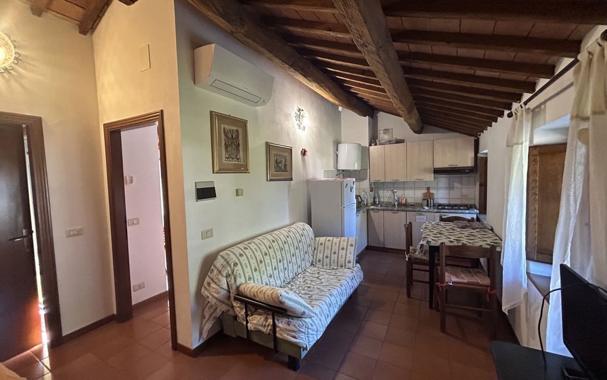 Close to Paciano, in hilly and very panormic location, inside a very beautiful fully restored stone farmhouse,apartment of ideal use also as a vacation home or investment.The property of approx. 43 sqm, comprises, after walking down a small flight of stairs, living room with kitchenette, double bedroom and bathroom with shower. It includes a small private green corner of about 10 square meters. The property shares with the other units of the farmhouse the large outside space, the 14x5 swimming ...