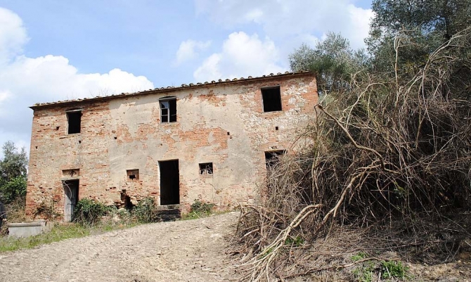 In the heart of Tuscany, about 47 km from the international airport of Pisa , 54 km from the Tirrenica coast and 79 km from Florence and 2 km from the first servicesFor saleTypical Tuscan farmhouse with bricks/stones façades. It is a two storey house of 230 sqm completely to renovate plus 1 ha of land .The road needs to be completely repaired in order to bring there also the utlities ( water, light )Very particular is its closeness to the historical centre and its wonderful panoramic view over t...