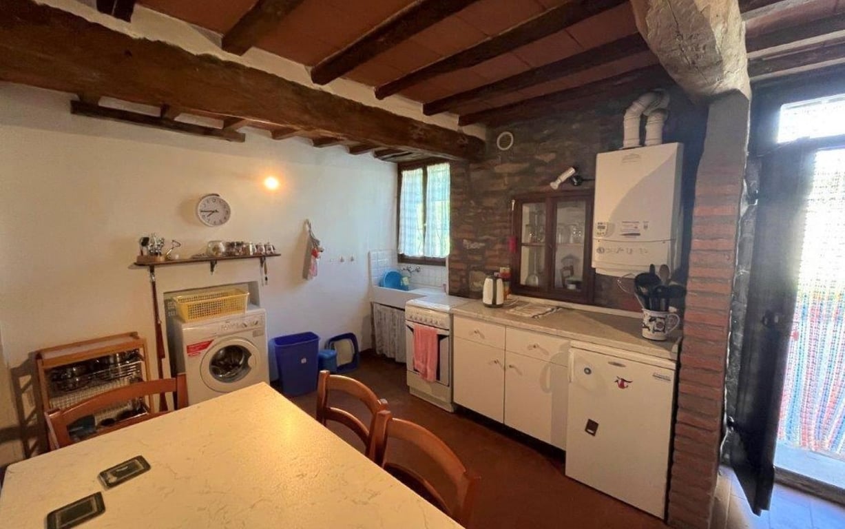 A few minutes from the historic centre of Panicale, a charming semi-detached house on two levels of approx. 75 sqm divided as follows:Ground floor: eat-in kitchen and living room with a French window overlooking the shared courtyard.First floor: two double bedrooms and bathroom.The property has a strong, typical Umbrian character, with splendid wooden beams, internal pointed stone walls, and antique terracotta flooring.The location is convenient: it is a few minutes from the historic centre of ...