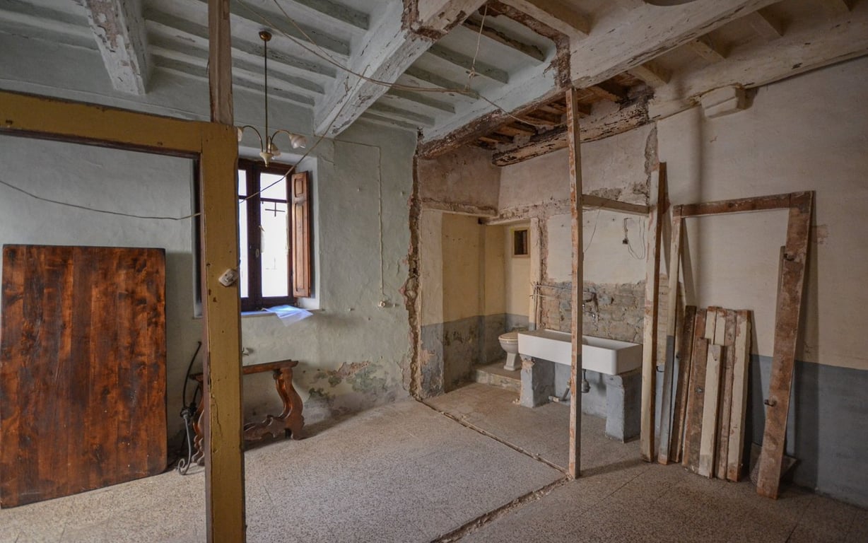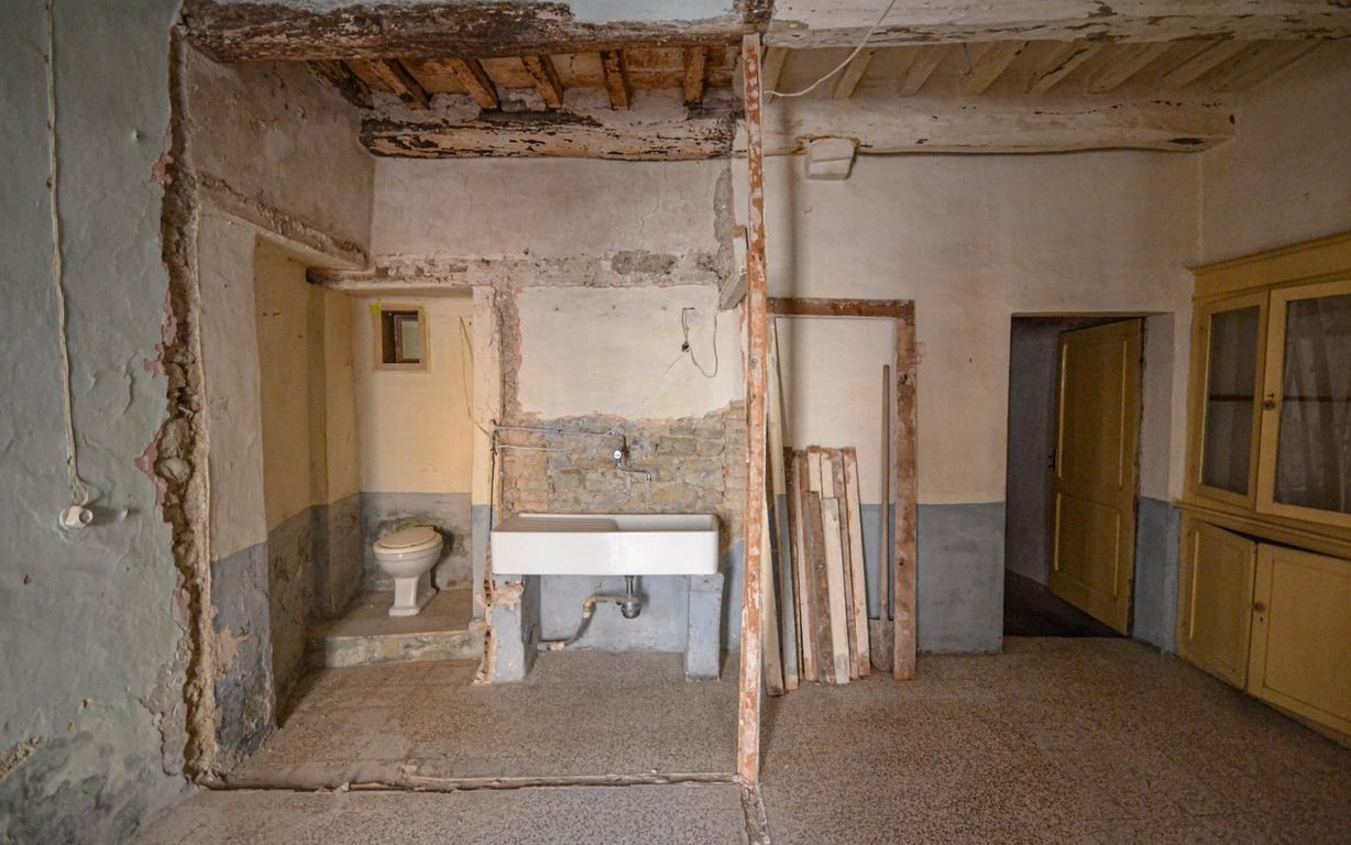 In the heart of historic centre, close to the castle, apartment on the ground floor divided in living area with kitchen corner and fireplace, double bedroom and bathroom. The property includes large cellar and grotto for a total of approx. 30 sqm as well as small private garden. Open views of the suroounding valley. To be restored.