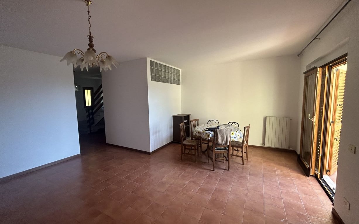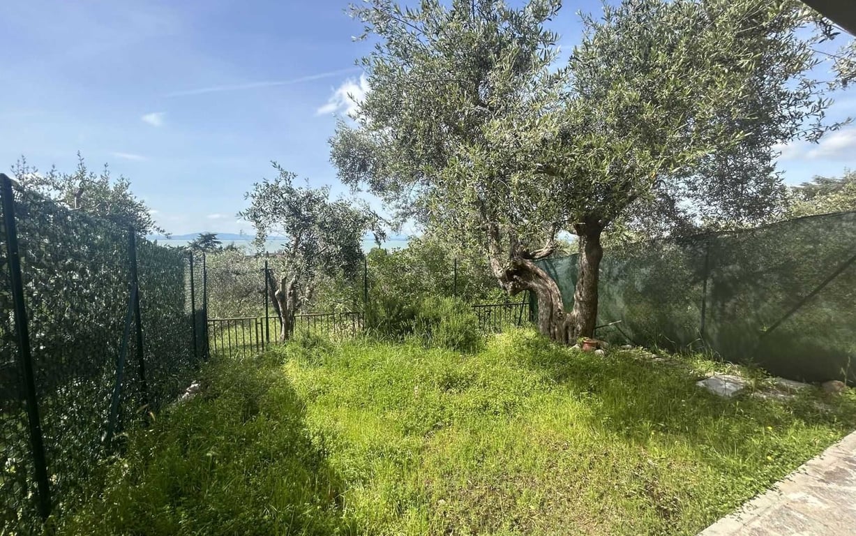 In Passignano sul Trasimeno, in a hilly and panoramic area, head of a detached terraced house with private garden and lake view, set in a very pretty residential area.The small villa, measuring 135 sqm, is on two levels as follows:- Ground floor: hallway, large living room with fireplace and direct access to the garden, kitchen, small bathroom- First floor: two double bedrooms and single bedroom all with small terrace, large bathroom, attic.Front driveway, 40 sq m garden with olive tree plant, a...