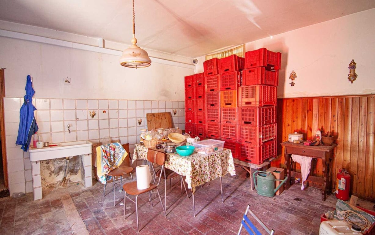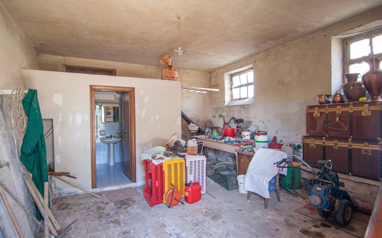 In hilly, reserved and lake views location, not far from the amenities, farmhouse in brick and stone free on three sides on two levels of approx. 200 sqm divided as follows:Ground floor: four large rooms used as cellars, storage and bathroom;First floor: large access terrace with lake views, dining room with fireplace, habitable kitchen, living room, large corridor, three bedrooms, bathroom with bath tub and toilet.The property includes covered parking space of approx. 25 sqm, agricultural annex...