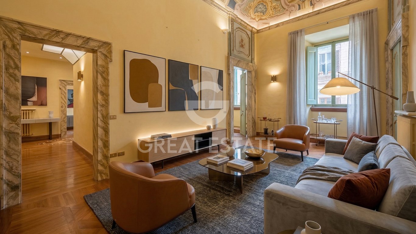 Within the historic Palazzo Baldeschi-Oddi, in the heart of Perugia old town center, we offer for sale a prestigious representative apartment, located on the piano nobile, dating back to the 16th century. The property, measuring approximately 200 cadastral square meters, was fully renovated in 2006. The residence stands out for its magnificent frescoes, predominantly from the 17th century, with later interventions from the 18th and 19th centuries, making each room unique and of extraordinary ar...