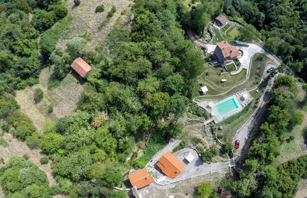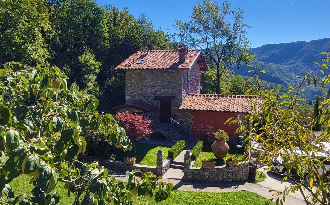 Newly converted traditional stone houses on site of old mill. Private garden and eating area, private extensive grounds and private gated pool. 6 Bedrooms and 5 bathrooms. Wonderful conversion set beside stream in the midst of chestnut and beech woods, with beautiful country and mountain views. Borgo Mulino gives renters full privacy and private use of gardens and pool. A wonderful setting, with views of mountains all accross one side, and shielded by private chestnut woodland on the other,...