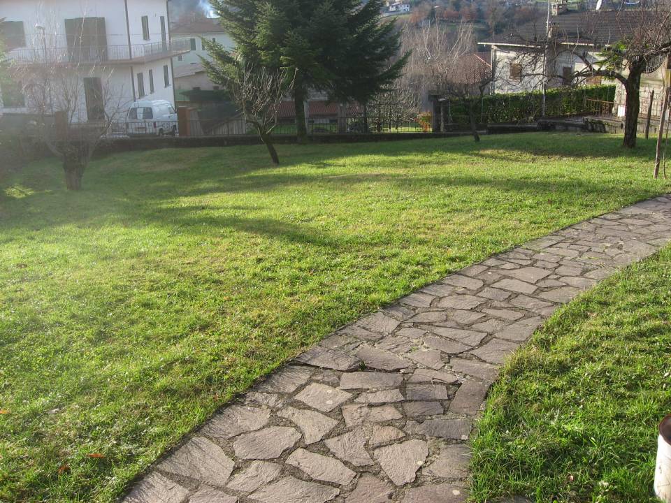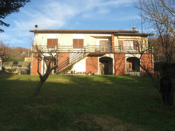 Ground level apartment of a villa (113 sqm) with large garden (800 sqm, just under 0.2 acres) in the mountain village of Colognola, just 5 minutes from Piazza al Serchio. Superb views. Plenty of room for swimming pool. Main door to hallway. To the right there is a kitchen with corner fireplace, dual aspect windows and access to the dining room. To the left is a last storage cupboard. Door to back hall from which there is access to 2 bedrooms (1 double and 1 single) and shower room with window....