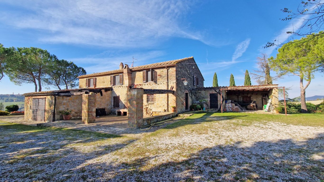 This ancient farmhouse for sale in Val d'Orcia, province of Siena, is a typically Tuscan property, with a large courtyard and outbuildings.This charming home enjoys a truly wonderful location, on a hillock about 500 m above sea level, with spectacular views of Pienza and Monticchiello, and a strategic position in the heart of Tuscany, among beautiful medieval villages, not far from the main cities of the region.The property consists of a late 19th-century stone farmhouse, arranged on two floors,...