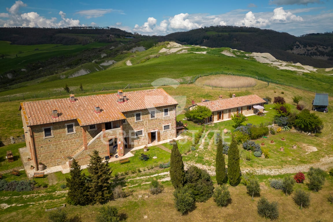 In the spectacular Val d' Orcia, wonderful property for sale consisting of farmhouse, annex and surrounding land. The farmhouse, which is on 2 floors, has 3 flats on each floor of various sizes, equipped with all comforts, for an overall total of 6 charming units, all independent and with kitchen. In the annex, there is a laundry room, reception, a bathroom, a large kitchen with pantry, a comfortable dining room with fireplace that can seat up to 35 persons and a technical room. Surrounding the ...