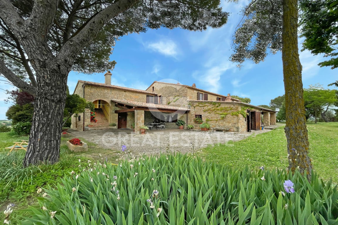 This beautiful farmhouse, in a panoramic position, overlooks the Val d'Orcia and the village of Pienza. It is on two levels, connected both internally and externally, as follows. On the ground floor there is a large living room, kitchen, pantry, billiard room, cellar and a further room with bathroom, as well as technical rooms and the characteristic outdoor wood-burning oven. There are also large outdoor porches to enjoy the garden. The first floor has a beautiful outdoor loggia and there is a c...