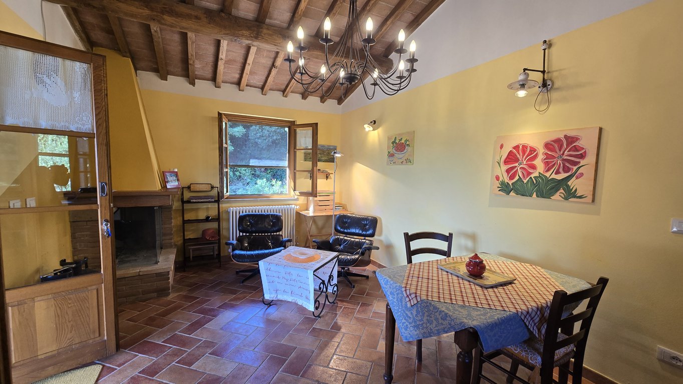 In Pomarance countryside, at the edge of a small hamlet, perched on a hill, in a fantastic panoramic location, for sale independent villa with 1,7 ha of land. The house is 50 sqm, on one single level and it is composed of: living-room/kitchen with wood burning fireplace, one double bedroom and bathroom with shower. It boasts a lovely 24 sqm loggia The house was built up 20 years ago, it boasts a wonderful panoramic loggia where it is possible to admire a stunning view over Pomarance village and ...
