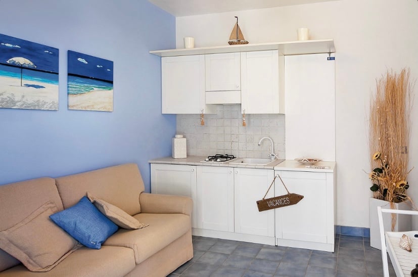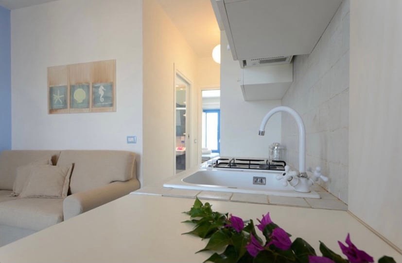 Elegant Mediterranean-style apartment with excellent finishes. The property is set on the first floor with a balcony and a terrace. The apartment comprises of a living area with 1 sofa bed, a kitchen, a hallway with a storage room, 1 double bedroom with a TV, 1 bathroom with a shower and access to the garden. Utilities are present including air conditioning system. Each apartment has 1 private and a covered parking space. There is a possibility to use the swimming pool of the resort and the...