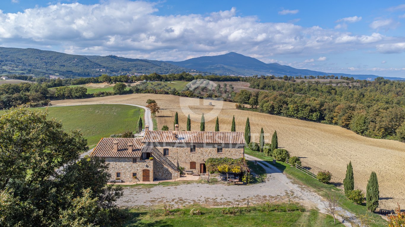 Podere Salceto is a typical all stone farmhouse that has been completely renovated. It boasts a gross floor area of 510 sqm spread over two levels, internally arranged as follows: on the ground floor, there is a storage area, another space featuring a bathroom, a kitchen, and a large billiard room. These rooms open onto a spacious pergola, perfect for dining during warm summer evenings. Also on the ground floor, with a separate entrance, there is an independent apartment comprising a kitche...