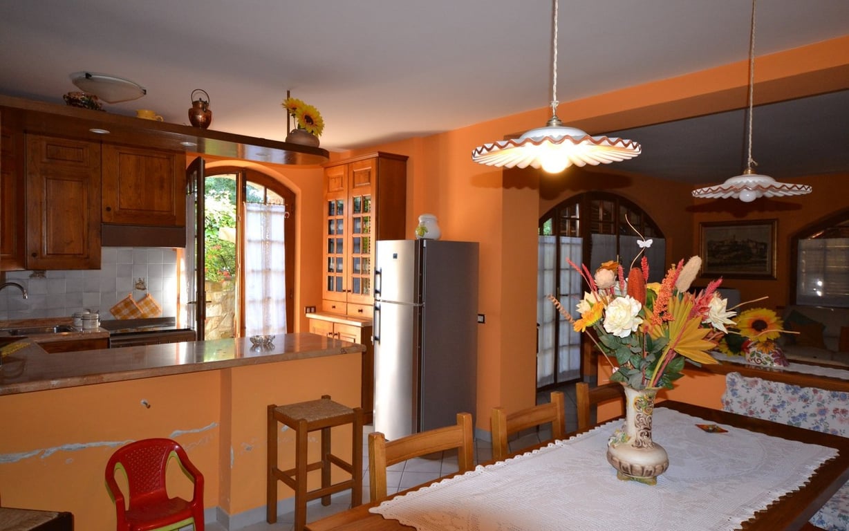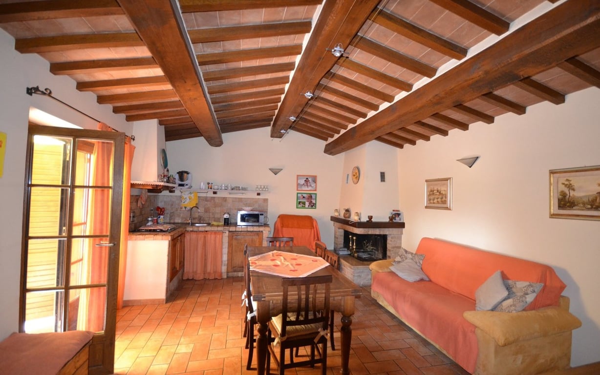 Not far from the town, semi detached villa on two levels totalling approx. 100 sqm with large living room with fireplace, kitchen, bathroom and storage on the ground floor; passageway, two bedrooms, bathroom and terrace on the first floor.The property includes an outbuilding of approx. 35 sqm with living room with fireplace of exclusive use, garden of 1700 sqm, parking spaces and outbuilding, all shared with the adjacent property.Quietly and panoramically located.