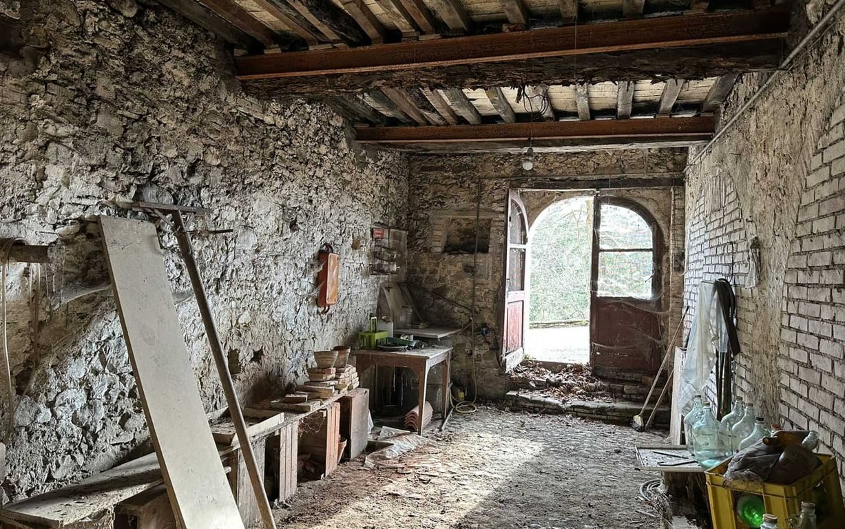 In small hamlet, close to the historic centre of Ficulle, typical stone townhouse of approx. 180 m2 on four levels divided in large cellars, grotto and storage on the ground floor; apartment to be restored divided living room with kitchenette, double bedroom and bathroom with shower on the first floor; habitable apartment divided in kitchen, double bedroom, single bedroom and bathroom with bath tub on the second floor; large attic on the topfloor.