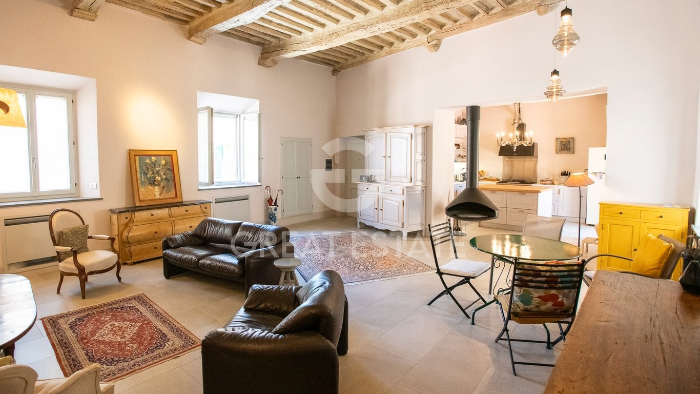 The apartment is located in the historic centre of San Quirico d'Orcia, literally just a few meters from the main street and the most beautiful square in the village. Although central, the building in which the apartment is located is set back from the street and therefore enjoys absolute tranquillity. The building features a small, shared courtyard at the front where you may park your car. The apartment is located on the first and second floor of a historic building. It includes a large living ...