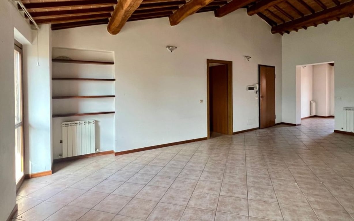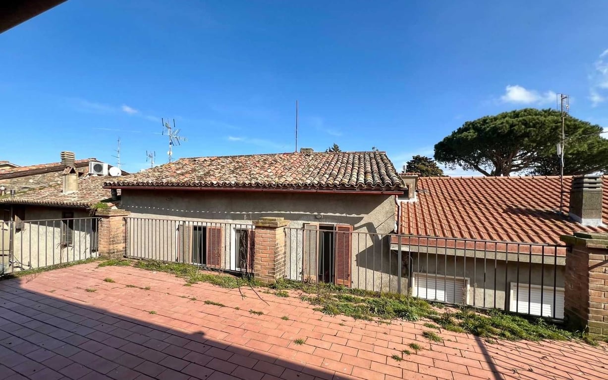 In San Venanzo, in the centre of the small village and with all the main services within easy walking distance, flat in a historic building.The flat is on the third and last floor, measures 131 square metres of floor space, has been renovated and comprises a living/living room, a kitchen with direct access to the solar paved area ideal for al fresco dining, two bedrooms, one double and one single, a bathroom with shower and a utility room. All the rooms have windows, so the property enjoys natur...