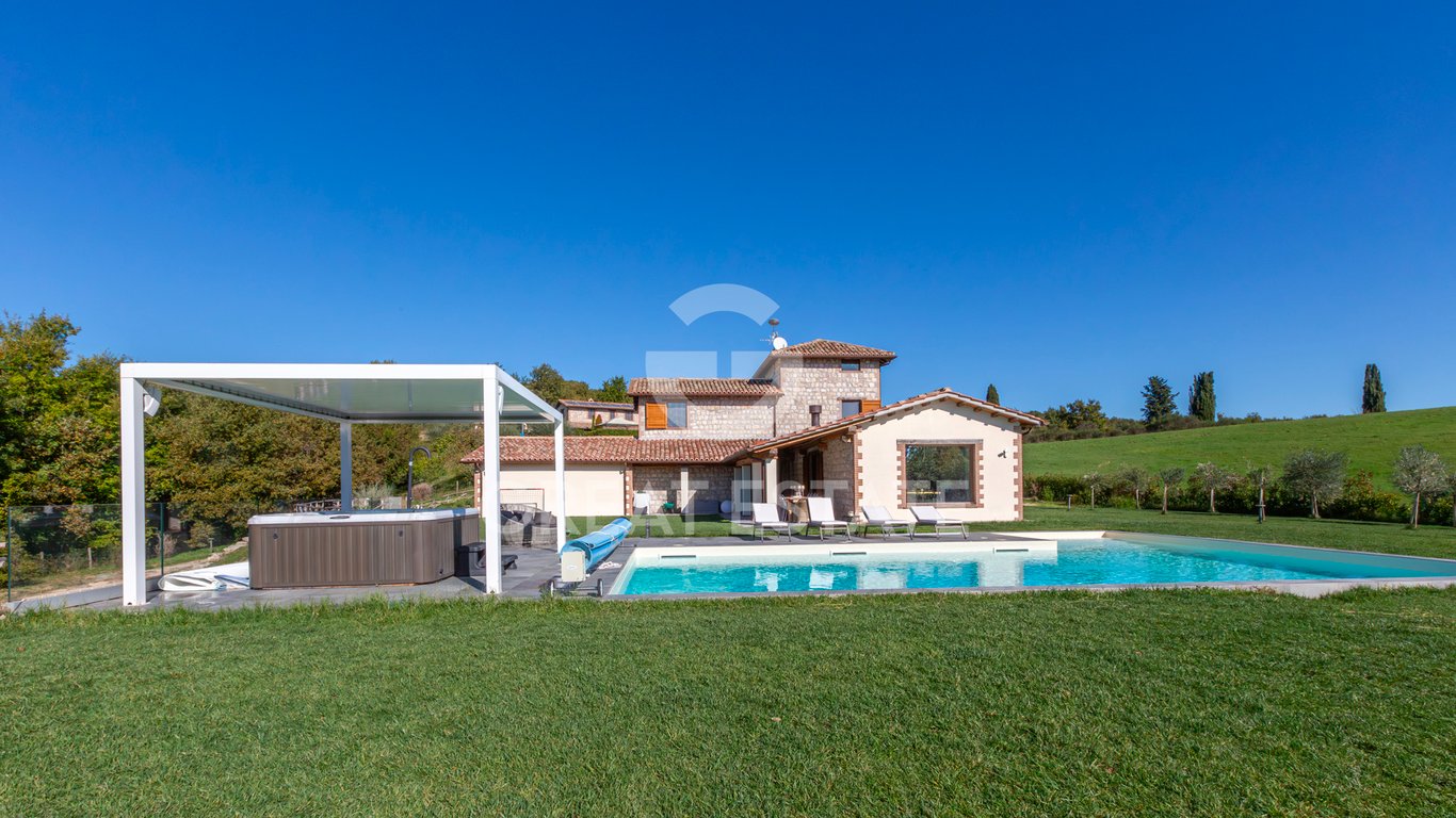 Located in the municipality of San Venanzo, in the province of Terni, and in the beautiful region of Umbria this characteristic country house, dating back to 1900 and newly renovated in 2019,maintaining its historic charm while offering supermodern comforts. The property offers a living area of 344.45 sqm, distributed over three floors and comprises 15 rooms, including 5 bedrooms and 5 bathrooms, making it ideal both personal housing and accommodation activities. Outside, the country house blend...