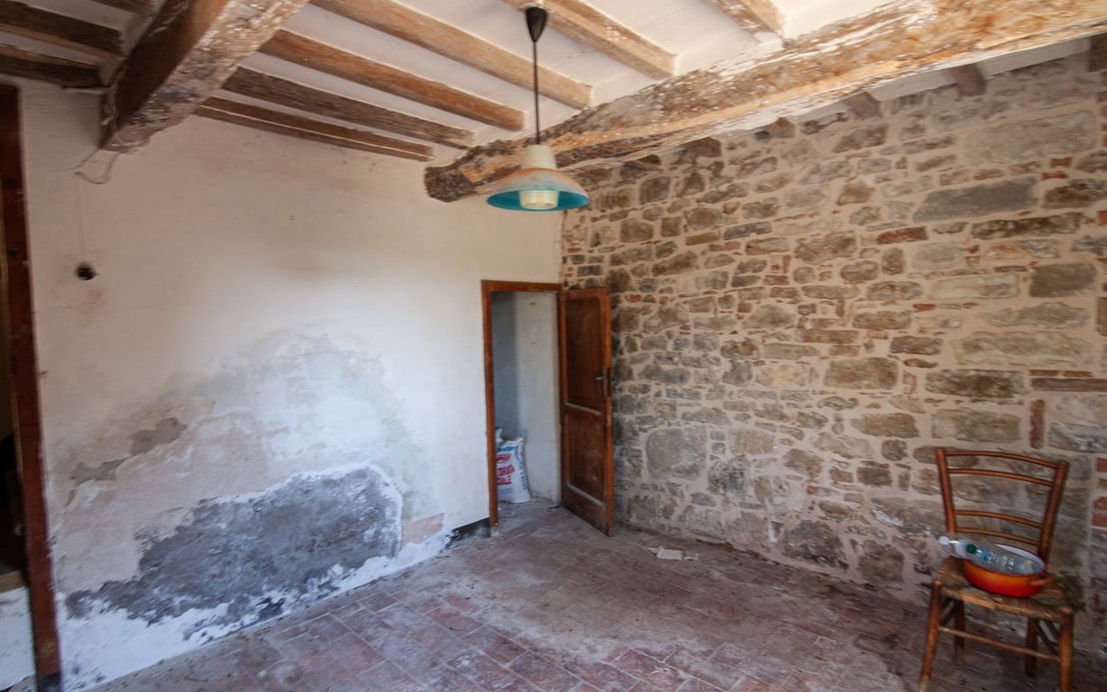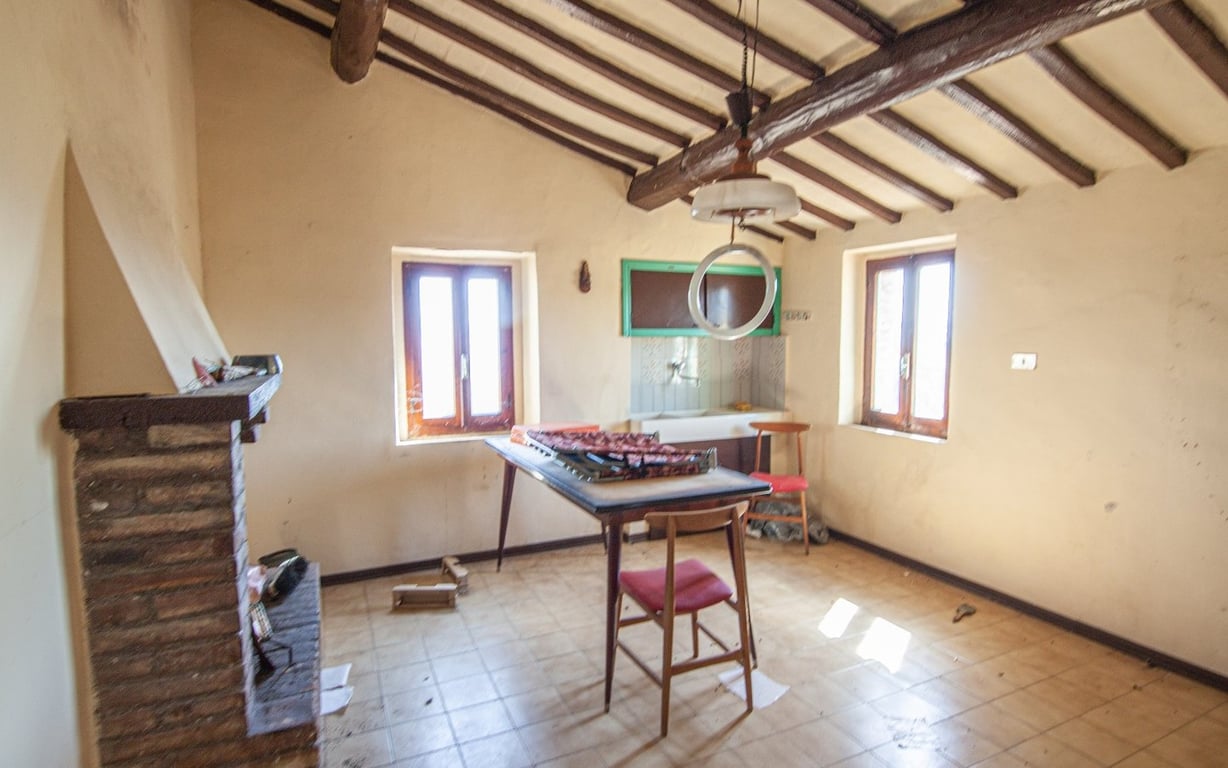 In hilly, panoramic and reserved location, close to the village of Collelungo, typical farmhouse, dating back to the 19th century, arranged over two levels of approx. 180 sqm and divided as follows:Ground floor: four large rooms used as cellars and two rooms used as storages;First floor: dwelling divided in living room with kitchen corner and fireplace, two bedrooms, corridor and bathroom with bath tub.The property, is in good general conditions, needs internal works to be carried out. It inclu...