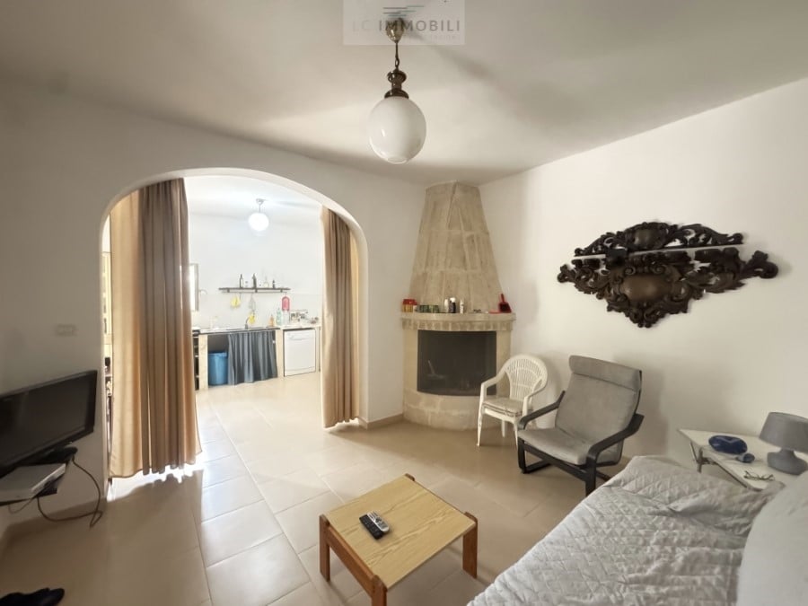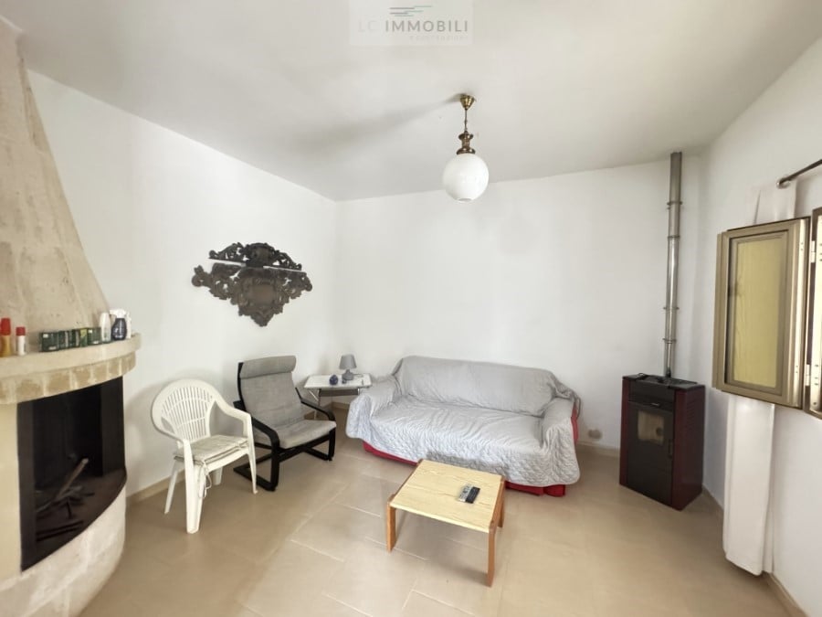 The house measures 124 sq m in total: 63sqm inside plus 61 sqm external areas; it is habitable and close to the town. It consists of four rooms: open space at the entrance, with living room and kitchen, a bedroom, a bathroom and a storage room. The room has air conditioning, the living room has a fireplace and a pellet stove. Outside the covered veranda, shower, paved yard, parking space and driveway owned by the property. Artesian well, cistern and irrigation system are also available. The ap...